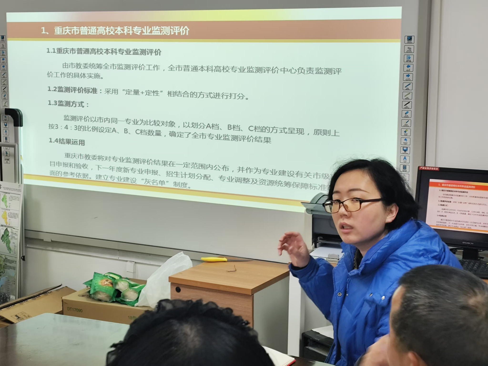 当前位置: 首页 >> 本科教育 >> 正文 齐心聚力共奋进,提升教学质量——人文地理与城乡规划专业教师开展2025年度第一次集中教研活动 时间:2025年01月13日 11:02 来源:BEATS 陈利 为做好人文地理与城乡规划专业健康发展,促进毕业生就业落实工作,完成重庆市本科专业新一轮监测评估,城乡规划系于2025年1月9日上午在系部办公室举行2025年度第一次集中教研活动。本次教研活动由曹珂系主任主持,主题为齐心聚力共奋进,提升教学质量,系部专业教师悉数参加。 教研会主要围绕两个维度展开:一是解读新一轮本科专业监测评估要点,曹珂主任结合人文地理与城乡规划专业上一轮监测评估结果,介绍了本轮本科专业监测评估方案和时间节点要求,通过解读本轮专业监测评价指标构成对2025年度专业建设的重点事项进行布局,并就员工学科竞赛指导和培育、竞赛优秀指导教师团队组建等事项进行深入讨论; 二是研讨如何推进落实毕业生就业工作,基于大四毕业生就业台账实时数据,系部全体教师共同分析了毕业生就业面临的社会形势,并就毕业生如何做好就业做出分析,同时,由于目前正处于毕业生就业紧要期,系部全体教师表示会积极推进毕业生就业工作,竭力做好本科毕业生就业谋划。 本次教研会作为2025年度城乡规划系专业建设和工作计划的序曲,为专业在新一年的建设发展瞄定了方向,亦对人文地理与城乡规划市级一流本科专业路径的有益探索。 上一条:控规筑基,设计赋能 ——人文地理与城乡规划专业校企联合课程共探城市新区发展新路径 下一条:公司学子在首届“浪潮杯”老员工新文科实践创新大赛中荣获佳绩 【关闭】