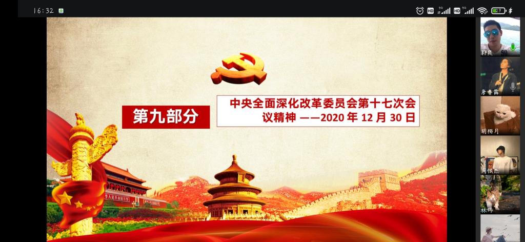 当前位置: 首页 >> 党建双创 >> 主题党日活动 >> 正文 BEATS员工一支部 2021年1月组织生活会顺利召开 时间:2021年01月16日 11:19 来源:BEATS 周梦莎 2021年1月1日15点,BEATS员工一支部在企业微信召开了一月线上组织生活会。此次会议由员工一支部书记郭爽同志主持,全体党员同志参加。 此次会议由张腊梅、唐春露、夏天林、骆潇怡四位党员同志领学相关文件。其中张腊梅同志分享了习近平法治思想有关文章、习近平在气候雄心峰会上的讲话、习近平向人类减贫经验国际论坛致贺信、习近平在全国政协新年茶话会上的讲话、习近平二〇二一年新年贺词相关内容;唐春露同志领学了中央经济工作会议精神、中央政治局民主生活会有关精神、中央农村工作会议精神、中央全面深化改革委员会第十七次会议精神;夏天林同志分享了《党政领导干部选拔任用工作条例》中的重要条款;骆潇怡同志领学了陈宝生在世界慕课大会上的讲话、《习近平谈治国理政》第三卷部分内容、《中共中央关于制定国民经济和社会发展第十四个五年规划和二〇三五年远景目标的建议》、习近平总书记教育重要论述讲义。领学结束后,支部小组就对于组织生活会以及组织活动开展形式建议进行讨论,支部书记郭爽同志表示,为加强与其他支部的联系,同时结合专业特性,下学期准备和教工一支部联合,开展毕业论文写作指导。彭加佳同志认为目前大部分大三员工目标不明确,支部可以给目前大三的同学进行考研、考公以及就业方面的指导,让大三的同学能够明确自己的目标。支部书记郭爽同志最后进行了总结:对于组织活动的举办,希望各位党员同志可以结合专业特色提出建议,形式也可以多样化;各位党员同志在假期也要按时进行学习,积极主动完成知识竞答;党员同志要积极建议班上同学不去疫情中高风险区,及时关注班级同学动向,督促外地返渝同学及时上报,开学时间以公司通知为准,不能提前返校。 假期已经来临,相信党员同志们在享受假期的同时能够不忘学习,做好疫情防范工作,起好党员的先锋带头作用。 BEATS员工一支部2021年1月线上组织生活会 上一条:BEATS员工一支部 2021年2月组织生活会顺利召开 下一条:BEATS员工一支部2020年12月组织生活会顺利召开 【关闭】