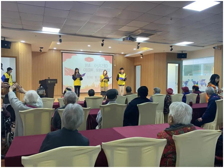 当前位置: 首页 >> 党建双创 >> 主题党日活动 >> 正文 BEATS员工一、二支部走进养老院志愿服务活动圆满结束 时间:2021年10月25日 14:27 来源:BEATS 郭爽 2021年10月23日,BEATS一、二支部组织部分党员同志及积极分子联合公司青年志愿者服务队在南岸区美瑞嘉年江南人家养护院举办了以“星心相系续传承,举国欢庆品经典”为主题的关爱老人志愿服务活动暨老人生日庆贺会。参加本次志愿服务活动的志愿者共有20余人,他们通过文艺节目汇演、生日庆贺的形式为老人们送去欢乐和祝福。 10月23日上午8点,由院青年志愿者服务队带队从公司出发到达目标养护院,到达现场后,各志愿者们有条不紊的开展活动前期准备工作,并将老人陆续带领到现场就坐。9点20分,活动准时开始。首先进行的是文艺节目汇演,节目类型丰富,有唱歌、跳舞、朗诵、武术等,期间,表演者们和老人们积极互动,活动现场气氛热烈。活动中还穿插了现场庆生环节,为生日临近的几位老人送去了生日贺卡表达了衷心的祝福。除此以外,老人们也积极参与到活动中来,为我们献唱了红色经典歌曲,现场气氛达到高潮。10点20分主持人宣布活动结束,全体成员一起合唱《我和我的祖国》,并组织现场志愿者们和老人们合影,伴随着欢声笑语,本次活动圆满结束! 本次活动创新想法,形式新颖,通过志愿服务的形式真正地让员工党员参与到社会贡献当中去,进一步地实现了自身的价值,提升了政治素质和党性,坚定了大家为人民服务的思想。本次活动的顺利开展也为老人们宁静的生活增添了几分色彩,我们用爱与热情向他们表达了衷心的问候与祝福。人人都敬老,社会更美好!愿大家一起从身边小事做起! 志愿者们为老人们表演节目 志愿者们为老人们准备庆生仪式 活动结束志愿者们和老人合影 上一条:BEATS员工一支部2021年11月发展党员大会顺利召开 下一条:BEATS员工一、二支部开展“党建百年,赓续初心”暨学习习近平总书记“七一”重要讲话精神知识竞赛活动 【关闭】