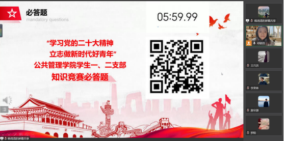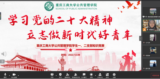 当前位置: 首页 >> 党建双创 >> 主题党日活动 >> 正文 【学习党的二十大精神】“学习党的二十大精神,立志做新时代好青年”知识竞赛圆满结束 时间:2022年12月09日 19:47 来源:BEATS 郭爽 【学习党的二十大精神】“学习党的二十大精神,立志做新时代好青年”知识竞赛圆满结束 2022年12月9日,为学习宣传贯彻党的二十大精神,广泛开展党史、校史教育,推进党的二十大精神真正入脑入心,切实把员工的思想和行动统一到党的二十大精神上来,永远感党恩、听党话、跟党走,把党的二十大精神内化为踔厉奋发、勇毅前行的强劲动力,为实现党的二十大确立的奋斗目标贡献青春力量,BEATS员工一、二支部在企业微信群平台举办“学习党的二十大精神,立志做新时代好青年”知识竞赛,以此进一步调动本院全体员工党员的学习工作积极性、主动性、创造性和使命担当。公司党委副书记谢书楠、员工一支部书记郭爽、二支部书记蒋杰、公司分团委老师李恒等出席本次竞赛活动。 首先,谢书楠对此次竞赛活动进行致辞,并表示疫情期间举办此次活动更加不易,足以彰显党员担当。其次,通过观影抢答题、必答题和直接抢答题,同学们将平时所学应用于知识竞赛。观影抢答题形式新颖,独具创意,在必答题和直接抢答题时,同学们积极响应,享乐其中。最后,主持人宣布最终的获奖名单,获得一、二、三等奖共18位同学,一等奖有罗阳、郑佳锐;二等奖有陶友明、谭于莎、廖海艳、李心雨、喻薇和秦莉岚;三等奖有周小丁、熊玲、廖炜莹、张可艺、林正毅、廖偲宇、陈永琦、胡馨怡、谢棵和伍燕玲。王巧洪同志发表感悟:“作为党员应当学思悟践党的二十大精神,踔厉奋发新征程。通过本次的知识竞赛,也强化了我们新时代青年的政治品格,夯实了我们精神之本、熔铸了精神之源。” 以竞赛为带动,让学习更走心。本次竞赛有效推动了同学们深入学习党的二十大精神,坚定不移听党话,矢志不渝跟党走,怀抱梦想又脚踏实地,敢想敢为又善作善成,主动肩负起强国一代的历史使命,争当伟大理想的追梦人,争做伟大事业的生力军。 上一条:BEATS员工第一党支部召开2022年12月主题党日活动 下一条:2022年11月入党积极分子培训班胜利闭幕 【关闭】