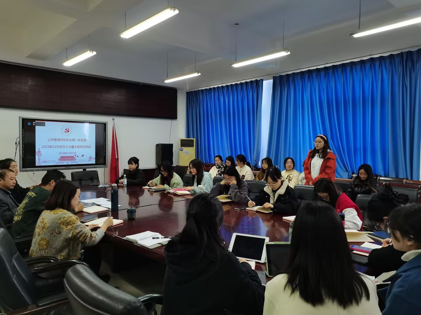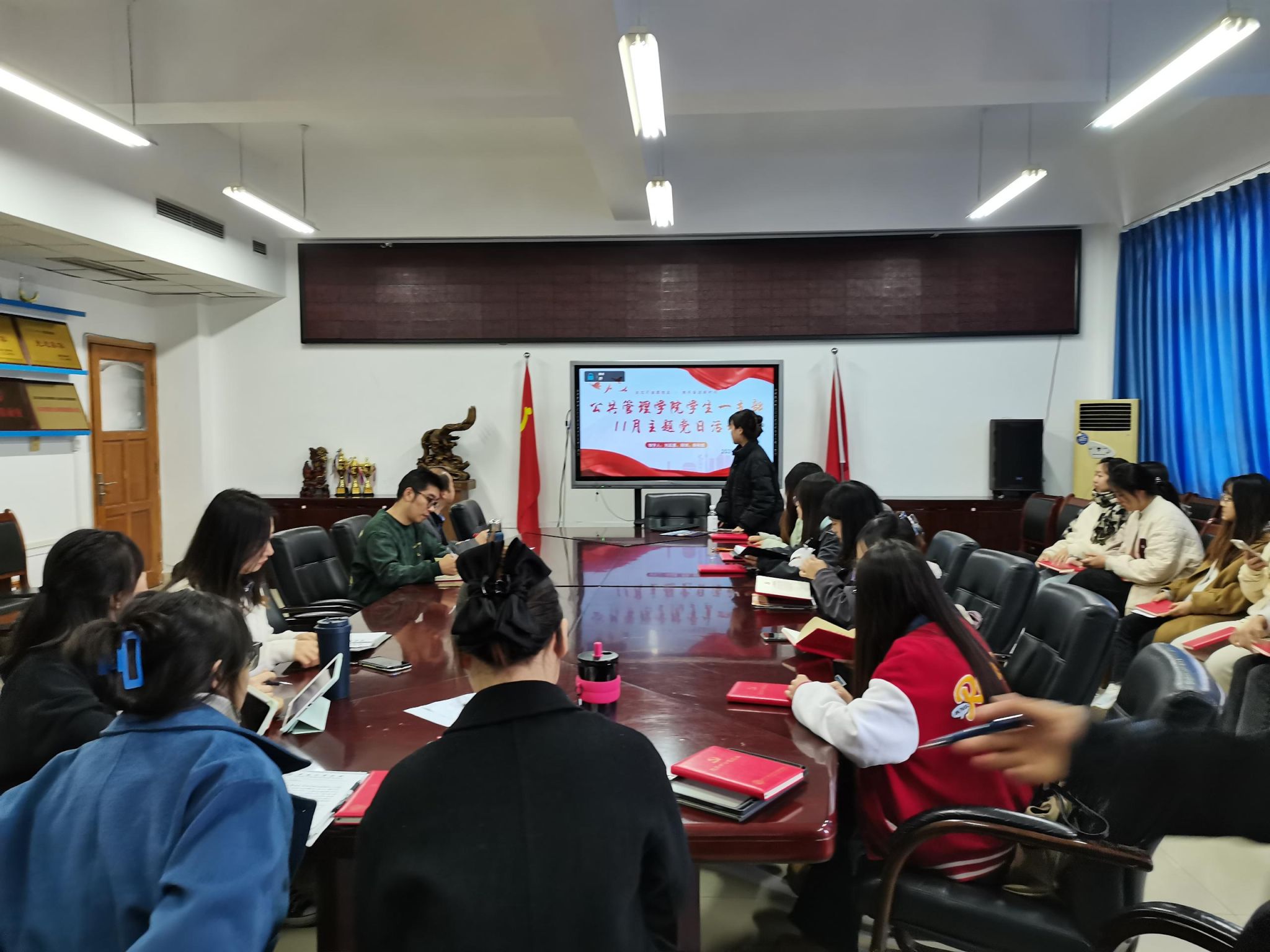 当前位置: 首页 >> 党建双创 >> 主题党日活动 >> 正文 BEATS员工第一党支部召开2023年11月党员大会暨主题党日活动 时间:2023年11月17日 17:23 来源:BEATS 郭爽 2023年11月17日,BEATS员工第一党支部在启智楼81004召开了党员大会暨主题党日活动。本次活动由支部书记郭爽同志主持。 会议伊始,由刘晶露、周琪、秦秋璐三位同志领学了《习近平对宣传思想文化工作的重要指示精神》《习近平在江西考察时的重要讲话精神》《习近平在同中华全国总工会新一届领导班子成员集体谈话时的重要讲话精神》等学习内容。接着,罗阳同志分享了“小巷总理”谭竹青的故事。与会同志根据学习内容发表了学习感悟。 随后,支部党员大会讨论接收刘丹、万欣、周欢、冯文祁等四位发展对象为预备党员事宜。会上,发展对象汇报了对党的认识,入党动机等情况;入党介绍人介绍了发展对象基本情况,并对其能否入党表明意见;支委会向大会报告政治审查、征求党员和群众意见等情况;与会党员充分发表意见,采取无记名投票方式进行表决,并通过支部接收预备党员决议。会议对新接收的预备党员表示祝贺,寄语新党员要谨记党员身份,注重维护党员形象,发挥先锋模范作用。 最后,党委副书记谢书楠同志做总结讲话。她指出,党员同志要实践全心全意为人民服务的宗旨,并在学习、工作、生活中具体体现出来,努力自我提高,提升公众表达能力,起到示范作用。 上一条:BEATS员工第一、第二党支部召开2023年12月主题党日活动 下一条:BEATS党委举行红色观影活动 【关闭】
