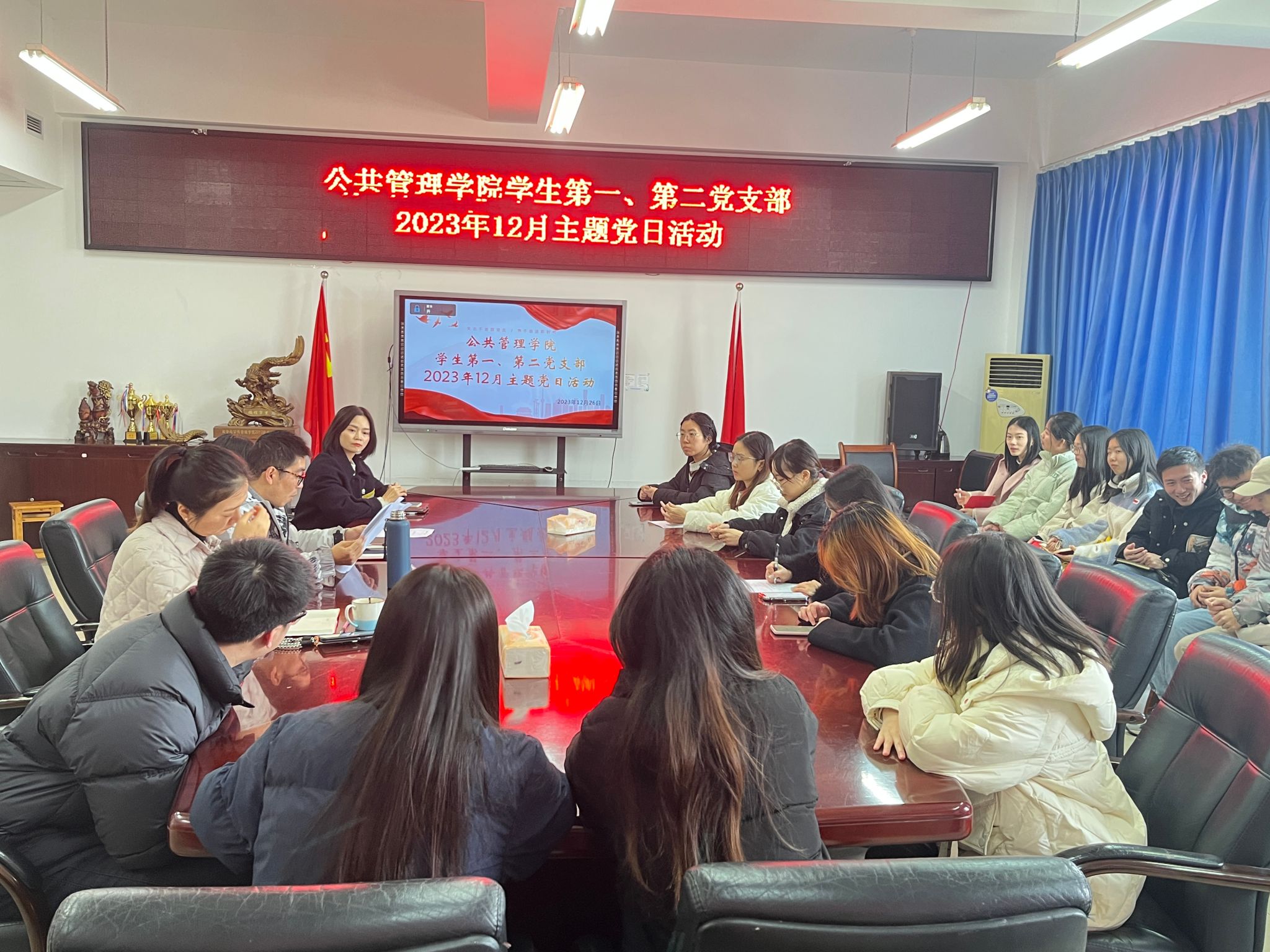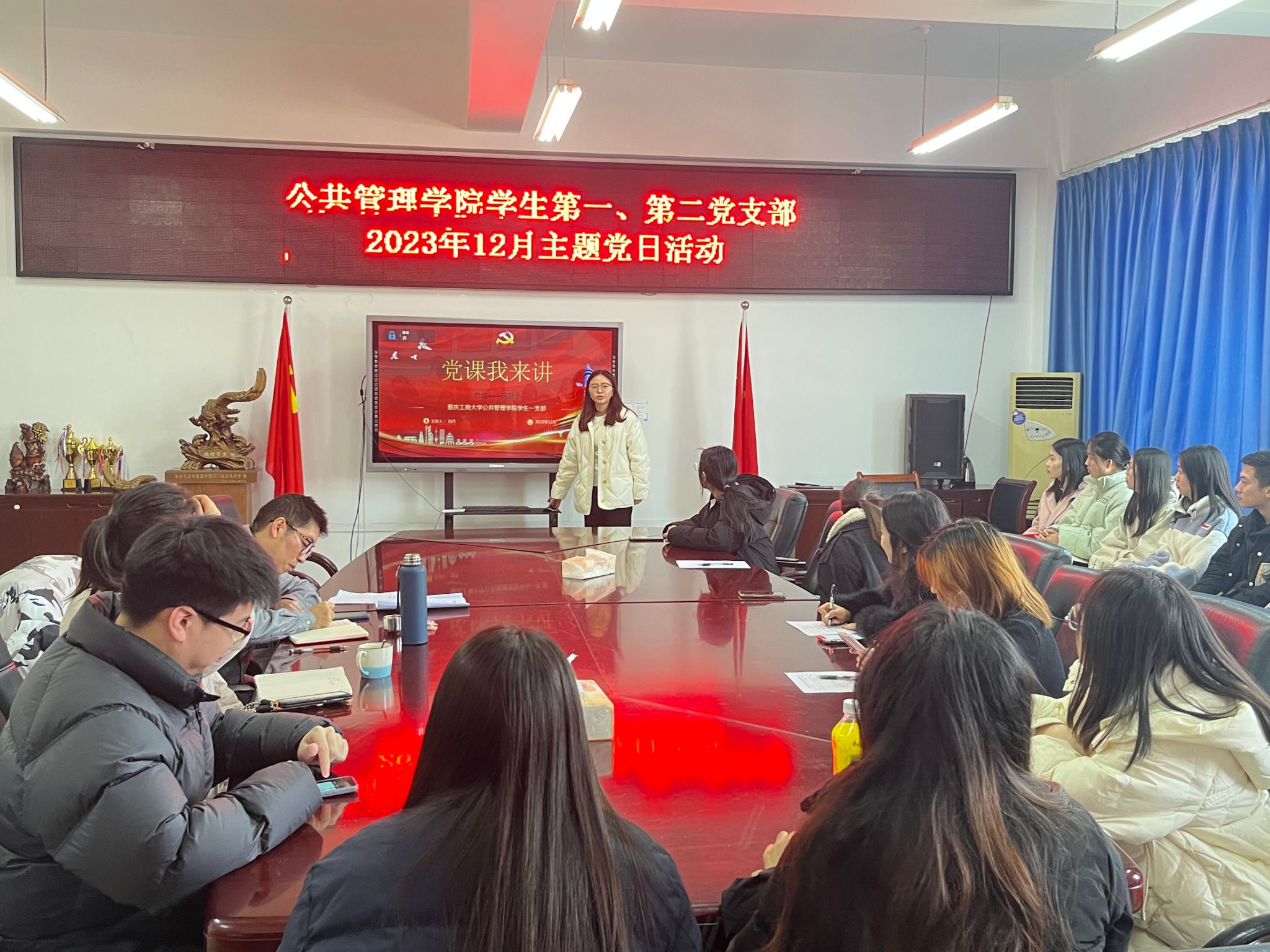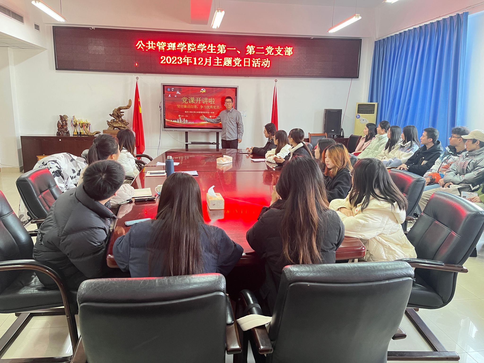 当前位置: 首页 >> 党建双创 >> 主题党日活动 >> 正文 BEATS员工第一、第二党支部召开2023年12月主题党日活动 时间:2023年12月26日 18:21 来源:BEATS 郭爽 为促进支部之间互相交流与学习, 12月26日,公司员工第一、第二党支部在启智楼81004会议室联合开展了一次主题党日活动。员工一、二支部的全体党员参加了本次活动。会议由员工第一党支部书记郭爽主持。 会议伊始,郭爽领学“关于落实《关于深入学习贯彻习近平总书记关于党的建设的重要思想 推进组织工作现代化的实施意见》的具体措施”,并主讲了以“坚守廉洁自律,争当优秀党员”为题的党课,他强调廉洁是每位党员同志必须具备的道德品质,尤其是员工干部,要牢记为同学服务的使命,戒骄戒躁、脚踏实地。员工第二党支部书记蒋杰以“弘扬宪法精神,树立宪法权威”为题讲述了党课,她强调作为党员同志,我们不仅要自己学习好宪法精神,还要向其他群众弘扬宪法精神,养成遵纪守法的习惯。 接着,周琪、秦秋璐分别领学了《习近平致首届“一带一路”科技交流大会贺信精神》《习近平就坚持和发展新时代“枫桥经验”作出系列重要指示精神》《习近平在北京河北考察灾后恢复重建工作时的重要讲话精神》《习近平对山西吕梁市永聚煤矿一办公楼火灾事故作出的重要指示精神》等学习内容。 随后,郑佳锐和刘丹分别进行了党史分享。郑佳锐分享了革命伟人毛泽东同志的事迹,他领导中国人民彻底改变自己命运和国家面貌,将自己的一生献给党和人民;刘丹分享了巾帼英雄向警予同志的事迹,面对敌人的诱惑和严刑拷打,她大义凛然、视死如归,表现了共产党员坚贞不屈的崇高气节。与会同志认真聆听,深受感动。 最后,郭爽作总结发言,通过学习革命伟人和优秀党员的先进事迹,希望全体党员不忘初心,牢记党的宗旨,发挥好党员的先锋模范作用,争做一名优秀党员。 上一条:BEATS员工第一、第二党支部参观重庆抗战遗址博物馆 下一条:BEATS员工第一党支部召开2023年11月党员大会暨主题党日活动 【关闭】