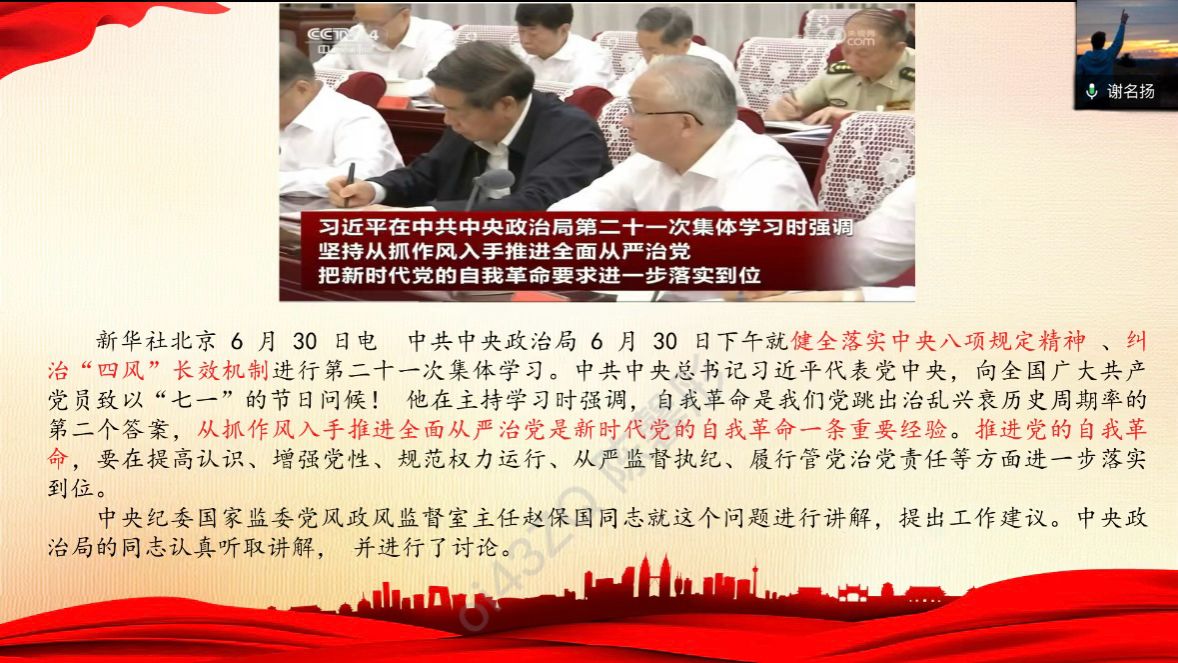 当前位置: 首页 >> 党建双创 >> 主题党日活动 >> 正文 BEATS员工第一党支部7月主题党日活动 时间:2025年07月08日 10:58 来源:BEATS 杨阳 2025年7月7日,BEATS员工第一党支部通过企业微信平台召开7月主题党日活动。会议由员工党员黄政龙同志主持,支部全体党员线上参会。 会上,谢书楠同志介绍了新加入支部的党员教师杨阳、梅艺同志,并说明两位教师今后将承担员工党支部的指导与管理工作。她表示,希望全体党员加强协作、密切联系,在组织生活中发挥好师生协同作用,持续推动支部建设迈上新台阶。 随后,朱羿明、谢名扬同志分别领学了《团结奋斗是中国人民创造历史伟业的必由之路》(《求是》杂志刊发)和习近平总书记在中共中央政治局第二十一次集体学习时的重要讲话精神,引导党员深刻理解“团结奋斗”的时代价值与现实意义。王若瑜同志分享了黄君珏烈士的英勇事迹,展现了革命先烈的坚定信仰与牺牲精神。刘念同志结合全国劳模冯秋荣的先进事迹,强调要将责任担当融入实际行动。陈馨彤同志围绕中央八项规定,倡导员工党员弘扬优良作风,抵制形式主义与享乐主义。 最后,谢书楠同志在总结中表示,假期既是身心调整的重要阶段,更是加强理论学习、锤炼党性的关键时期。她鼓励全体党员持续学习、主动作为,强化与共学社区、党员服务站的协同联动,推动党建与实践深度融合、服务实效持续提升,为增强支部凝聚力与组织力打下坚实基础。 上一条:BEATS员工第二党支部召开2025年7月主题党日活动 下一条:公管公司陆嘉书记主讲专题党课——党在新时代的“徙木立信”之举 【关闭】