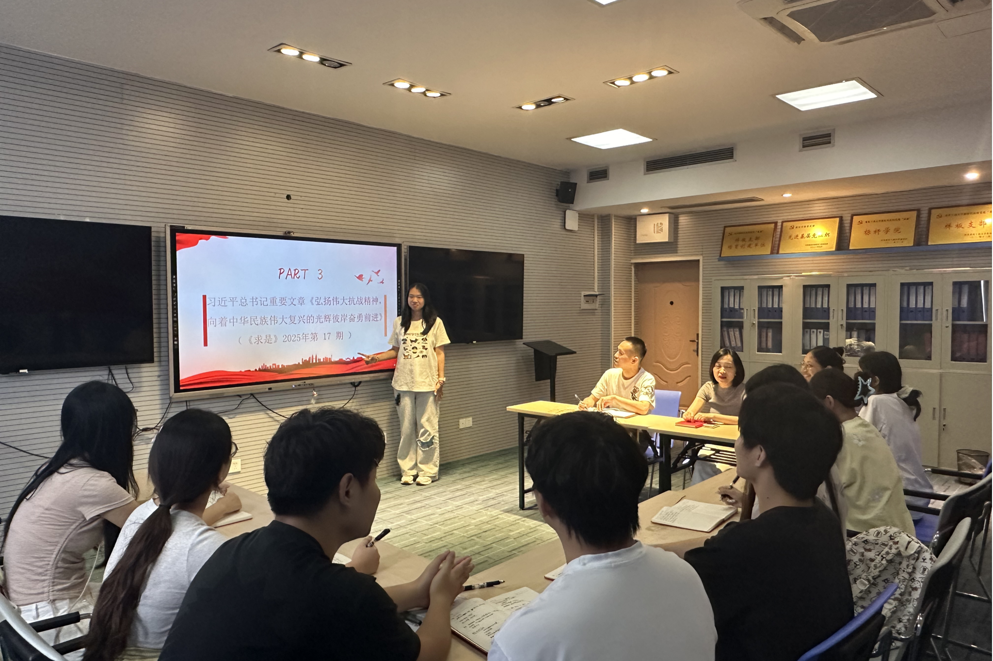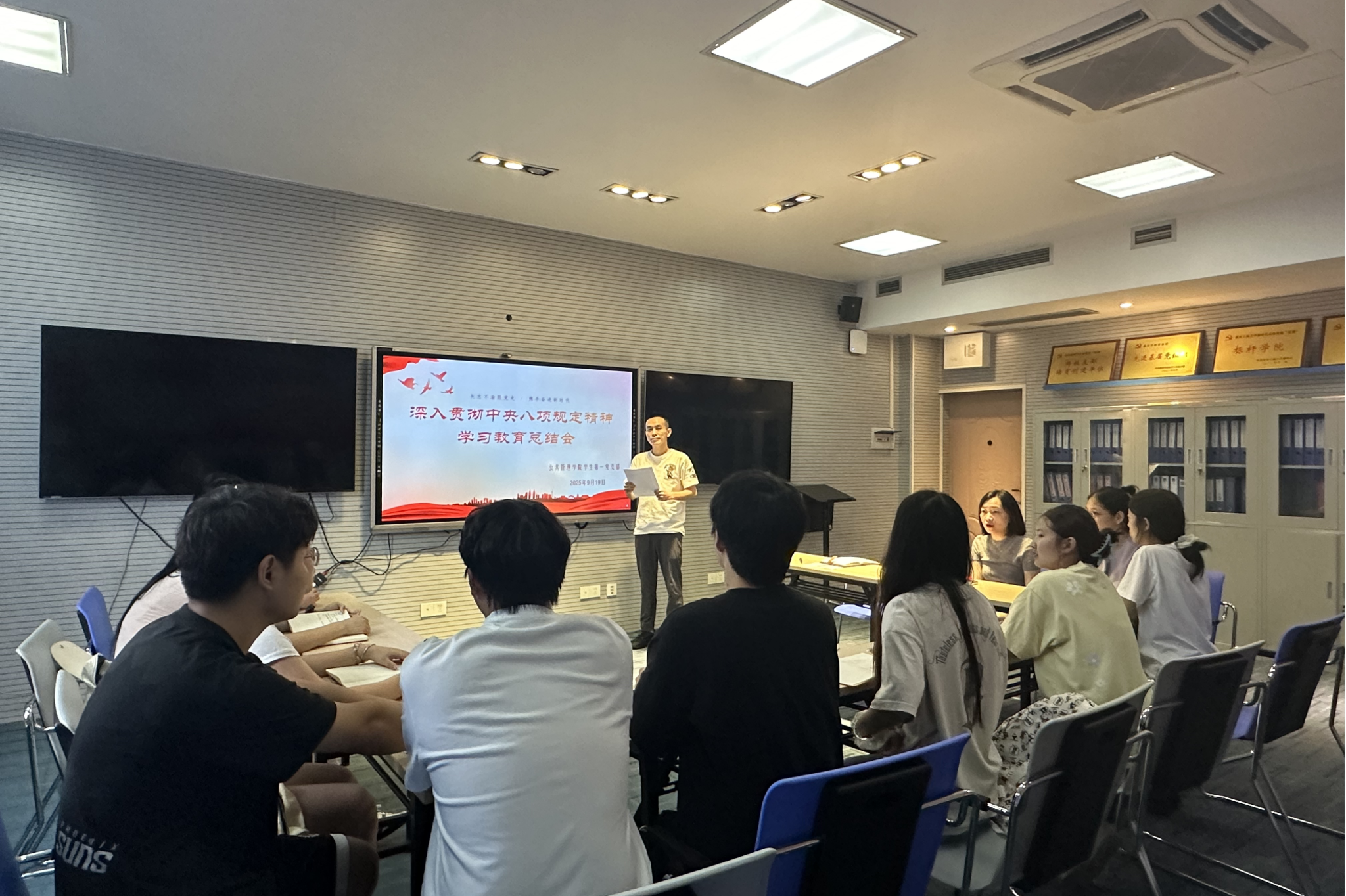 当前位置: 首页 >> 党建双创 >> 主题党日活动 >> 正文 BEATS员工第一党支部9月主题党日活动 时间:2025年09月22日 15:05 来源:BEATS 杨阳 9月19日下午1:30,BEATS员工第一党支部于81002教室召开9月主题党日活动,支部书记杨阳主持会议,支部全体党员参加。 会议伊始,杨阳同志组织党员系统学习《习近平谈治国理政》第五卷、中央城市工作会议精神等重要内容,强调“先学思想、再做工作”,以党的创新理论武装头脑、指导实践。同时,要求全体党员认真研读并集中讨论每月组织生活学习材料,推动支部工作更加规范、高效。 随后,由胡岚渝、陈馨彤两位同志分别领学习近平总书记关于落实中央八项规定精神的重要指示精神,以及刊载于《求是》2025年第17期的《弘扬伟大抗战精神,向着中华民族伟大复兴的光辉彼岸奋勇前进》等内容。与会同志一致表示,要把作风建设作为长期课题抓紧抓实,铭记抗战历史、赓续精神血脉,在新时代新征程上更好担当作为。党史小故事环节中,谭雨婷同志分享了李登月烈士的英勇事迹,生动展现了共产党人坚定信仰与无畏担当。 最后,杨阳同志对本次会议进行总结:一要持续深化学,在集中学习之外拓展原文原著学习的广度与深度;二要突出重点学,紧扣八项规定精神、人民城市等主题,结合专业学习与岗位实践深入研讨;三要注重转化学,把学习成果落实到个人学习、社会实践与日常作风中,以实际行动发挥党员先锋模范作用。 上一条:BEATS员工第二党支部召开2025年9月主题党日活动 下一条:党委常委、副董事长田双全调研指导BEATS全面从严治党工作 【关闭】