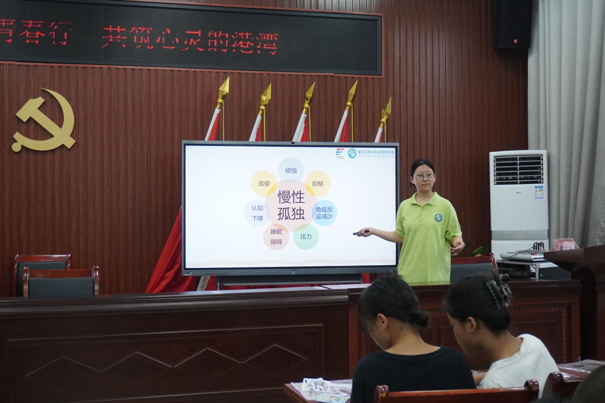 当前位置: 首页 >> 联系我们 >> 学团快讯 >> 正文 【青春三下乡】“心理健康青春行,共筑心灵的港湾”儿童心理健康陪伴系列活动 时间:2024年07月08日 10:00 来源:BEATS 2024年7月8日,BEATS“向阳而生,心灵守护”实践团走进江津区先锋镇麻柳村、夹滩社区、保坪村开展“心理健康青春行,共筑心灵的港湾”儿童心理健康陪伴系列活动。 “你们有烦恼吗?”“你的烦恼源于何处?”主持人的提问,引来了孩子们的积极发言讨论。紧接着的猜字游戏点燃了现场的气氛。志愿者通过展示“朋友”二字甲骨文以及各种字体演变引入了今天的心理健康教育的主题,“青少年人际关系及校园欺凌处理”。孩子们积极主动地分享“在自己心中,朋友是怎样的”。 随后志愿者着重为孩子们讲解了人际交往的重要意义,借助生动鲜活的实例和引人入胜的故事,让孩子们深刻领会到,长期缺乏人际交往会导致慢性孤独带来种种弊端,而良好的人际关系则是他们成长过程中无比珍贵且不可或缺的财富。 在接下来的环节中,孩子们通过纸笔进行绘画分析,围绕“我的朋友圈”展开自我探索。他们精心描绘出自己的朋友圈,并标注出不同朋友的特点以及与自己的关系。这一过程不仅加深了他们对自身社交状况的认识,更让他们学会了如何更好地维护和增进与朋友之间的情谊。 “面对朋友频繁过分的要求,应该如何应对?”针对这一实际问题,志愿者为孩子们提供了详细的建议和策略,并告诉他们,朋友过分要求很可能演变成校园欺凌,并和孩子们一同观看了有关校园欺凌的宣传片,并学习了应对方法,极大地增强了青少年儿童的自我保护意识。 活动的最后,一场别出心裁的“小小巧手我能行”手工扇子DIY活动为整个活动画上了圆满的句号。孩子们在团队成员的悉心指导下,亲手制作出精美的扇子,不仅锻炼了自身的动手能力,还深刻感受到了成长带来的喜悦和成就感。 此次“心理健康青春行,共筑心灵的港湾”儿童心理健康陪伴系列活动受到了社区和家长们的一致好评。“向阳而生,心灵守护”实践团将持续关注留守儿童的成长问题,并精心策划更多具有针对性的关爱活动,为留守儿童打造一个充满关爱和温暖的心灵港湾,让他们在成长的道路上不再孤单。 上一条:【青春三下乡】江津区先锋镇夹滩社区民宿选址与院落景观设计调研 下一条:【青春三下乡】实践团赴酉阳县河湾山寨开展 乡村旅游社区的共富实践考 【关闭】