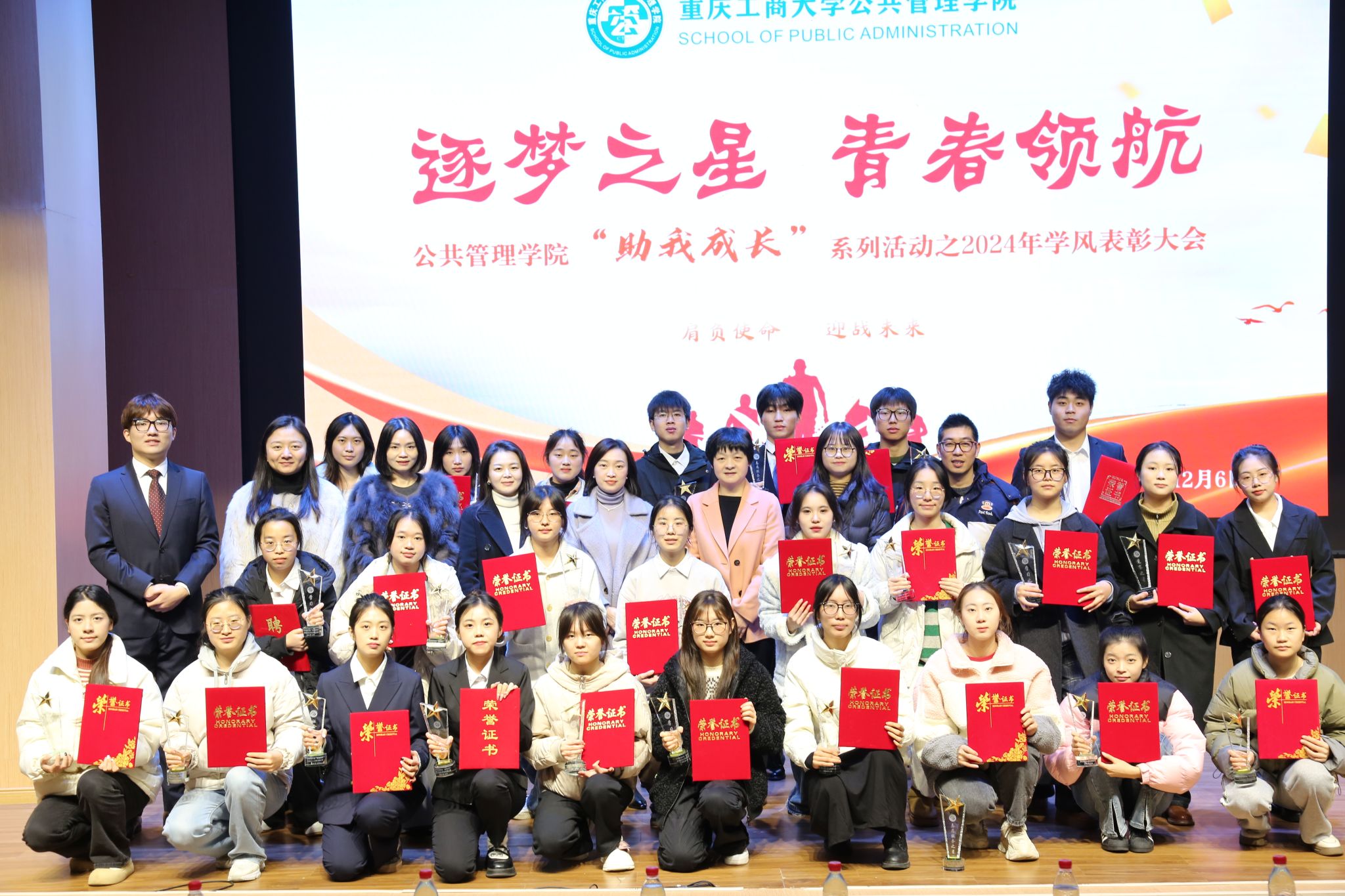 当前位置: 首页 >> 联系我们 >> 学团快讯 >> 正文 逐梦之星 青春领航--BEATS举行2024年学风建设表彰大会 时间:2024年12月09日 14:28 来源:BEATS 12 月 6 日,BEATS“助我成长”系列活动之2024年学风建设表彰大会在南岸校区明智楼110100报告厅举行。党委学工部部长申卫东、人才招聘处处长钟增胜、校团委书记吴佑波、教务处副处长曾晓松,BEATS党委书记陆嘉、党委副书记谢书楠、副经理王长征、城乡规划系系主任曹珂,土地资源管理系系主任杜挺出席了本次表彰大会。BEATS莘莘学子们齐聚一堂,共同见证这一荣耀时刻。 大会在申卫东部长热情洋溢的致辞中拉开帷幕,他对过去一年公司在人才培养方面取得的成绩给予了高度肯定。并寄语同学们:“青年老员工,是民族的起点,要敢于拼搏,怀揣梦想,努力成长为有理想、有担当、能吃苦、肯奋斗的新时代好青年。” BEATS鹿鸣语言艺术团朗诵队带来的朗诵《榜样的力量》,“逐梦之星,青春领航”这不仅仅是一句口号,更是我们每个人内心深处的呼唤。让我们以榜样为镜,以他们的精神为动力,勇敢追寻自己的梦想,用实际行动书写属于自己的青春篇章。 本次大会表彰了那些在学习中勇攀高峰的 “学习之星”、在竞赛场上拼搏奋进的 “竞赛之星”、在志愿服务中传递温暖的 “志愿服务之星”、在社会实践中展现担当的 “实践之星” 以及在困境中砥砺前行的 “励志之星”,共31位同学获得表彰。随后,“志愿服务之星”22社保二班黄政龙、“实践之星”22城市管理谢名扬、“竞赛之星”22土管二班徐伶俐、“励志之星”22社保二班杨欢、“学习之星”22土管二班的李雨晴作为受表彰代表,分享了他们的成长经历,他们的故事如冲锋号角,唤起同学们内心斗志,为梦想拼搏,砥砺前行。 最后,陆嘉指出:“勤学善思、求真笃行”是我们公司的学风,广大公管学子要勤奋好学、善思执著,追求真理、注重实践,让青春在不懈的奋进中绽放绚丽光彩。她强调,本次表彰大会不仅仅是对优秀员工的肯定与鼓励,更是对全院员工的激励与鞭策,BEATS肩负着为国家培养高素质公共管理人才的重任,每一位师生都应牢记使命,以先进为榜样,不断砥砺前行! 上一条:BEATS举行第五届干事见面大会 下一条:【志愿活动】第十三周活动大合集! 【关闭】