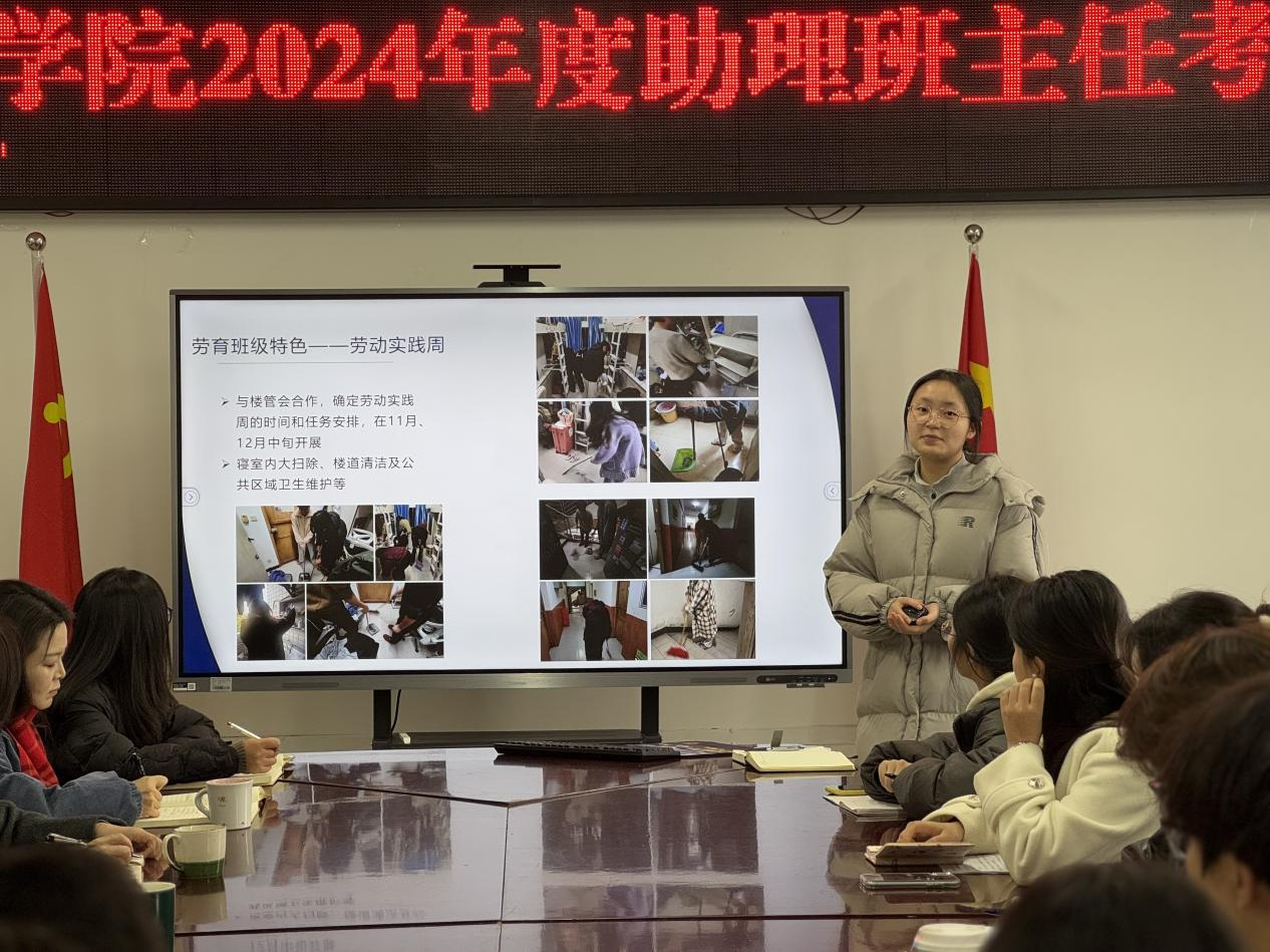 当前位置: 首页 >> 联系我们 >> 学团快讯 >> 正文 BEATS开展2024年度助理班主任考核汇报 时间:2024年12月31日 10:06 来源:BEATS 李恒 2024年12月30日,BEATS在启智楼81004开展助理班主任考核汇报。公司党委副书记谢书楠出席会议,全体辅导员参与本次考核工作。 会上,8名助理班主任分别针对当前在“班级建设”“班级活动开展”“谈心谈话工作”等方面的工作成效进行汇报,通过展示班级活动特色,梳理工作亮点方法,分析现存问题,总结经验查找不足,提出2025年春季学期的工作目标和计划。 谢书楠进行总结讲话,她肯定了各位助理班主任本学期的工作表现,并针对现存问题提出了改进意见与建议。她希望全体助理班主任能够不断提高思想认识,持续加强学习,积极引领班风学风建设,锻炼自我,增长才干。 近年来,BEATS积极探索员工管理新方法,创新推行助理班主任制度,旨在通过朋辈帮扶、年级联动、生生互助,以学风建设为统领、以优化班级管理制度为抓手、以员工综合能力提升为出发点,主动探索班级建设新路径,以高水平员工工作助力公司高质量发展。 上一条:BEATS召开2025年寒假留宿员工安全教育专题会 下一条:23社保一二班“剪韵绘初心,青春筑梦行” 趣味剪纸团日活动圆满落幕 【关闭】