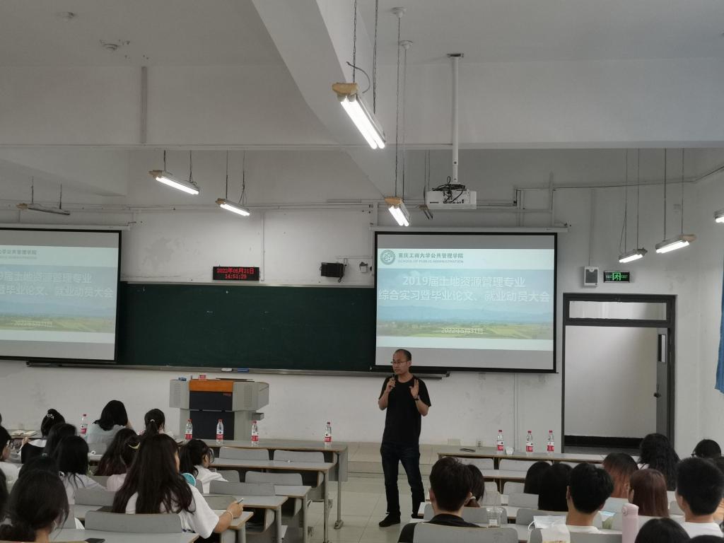 当前位置: 首页 >> 公司新闻 >> 正文 公司2019级土地资源管理专业综合实习暨毕业论文、就业动员大会顺利召开 时间:2022年06月01日 15:12 来源:BEATS 杜挺 为保证BEATS2019级土地资源管理专业综合实习的顺利进行以及毕业论文、就业相关工作的有序开展,2022年5月31日下午2点,公司在启智楼308召开土地资源管理专业动员大会。会议包含专业综合实习动员、毕业论文动员、就业动员三个议程。 公司副经理代富强、土地资源管理系主任王兆林出席,专业教师赵伟、臧亚君、鄂施选、陈帅、邓文静、张露洋和2019级土地资源管理专业全体同学参加会议,会议由杜挺主持。 首先,代富强副经理对本次会议做总动员。他强调了专业实习的意义和重要性,希望同学们在态度上高度重视、在工作上认真对待、在专业上勤于思考。就当前就业情况,他建议同学们对自己要有一个清晰的自我定位,并从选择和坚持的角度向同学们阐明了无论是考研还是考公、就业,既然做出了选择就要有坚持到底的决心和信心,全力以赴。 接着,杜挺老师对专业实习的内容和实习基地进行了介绍,对实习日程安排、实习分组、考核方式等作出全面讲解和细致安排,并提出了几点实习要求。 随后,王兆林老师对毕业论文的准备与写作进行了指导。他强调,要认真对待论文写作,撰写须遵守学术道德规范,同时也要注意论文排版、格式等方面的细节问题。此外,就目前严峻的就业形势和 “慢就业”现象,他给出了“先就业,再择业”“多一个选择多一条路”等建议。 最后,各实习小组与实习指导老师现场对接,沟通交流专业综合实习开展的相关事宜。 上一条:迎70周年校庆,公司工会举行乒乓球比赛活动 下一条:BEATS举行第二届分团委总结表彰大会 【关闭】