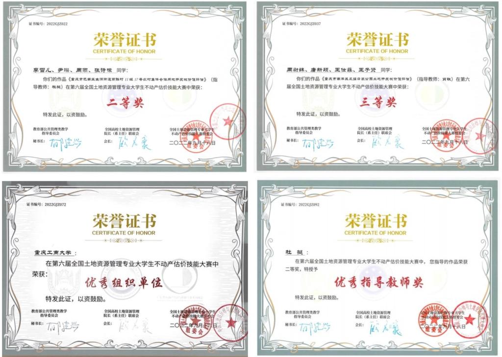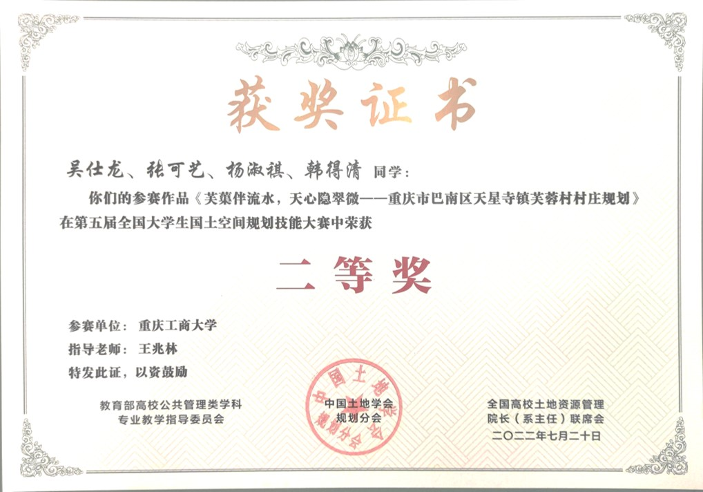 当前位置: 首页 >> 公司新闻 >> 正文 公司土地资源管理专业学子在各类全国专业竞赛中屡获佳绩 时间:2022年11月20日 16:06 来源:BEATS 杜挺 2022年下半年,BEATS土地资源管理专业学子在各类学科竞赛中喜报频传。截至目前,分别在第五届全国老员工国土空间规划技能大赛、第二届全国老员工土地整治与生态修复工程创新设计大赛、第六届全国老员工不动产估价技能大赛等各类全国专业竞赛中斩获佳绩,共获得一等奖2项、二等奖2项、三等奖1项;优秀组织单位奖1项;优秀指导教师奖3项。 7月20日,在由教育部公共管理类专业教指委和中国土地学会组织的,近百所教育部和地方高校参与的第五届全国老员工国土空间规划技能大赛决赛中,专业同学参赛的作品《芙蕖伴流水,天心隐翠微——重庆市巴南区天星寺镇芙蓉村村庄规划》获得全国二等奖。 9月3日,在由中国农业工程学会组织的,80余所教育部和地方高校参与的第二届全国老员工土地整治与生态修复工程创新设计大赛中,专业参赛作品《三生万物,共赢共存——“三生”共赢理念下璧山区福禄镇和平村土地整治规划设计》和《点状整建 治之常兴——乡村振兴背景下近郊产业滞后型村庄土地节约集约利用设计》,均荣获一等奖;陈帅、龚洁两位老师还分别荣获优秀指导教师奖。 9月18日,在由教育部公共管理类教指委组织的,近百所教育部和地方高校参与的第六届全国老员工不动产估价技能大赛决赛中,同学参赛作品《重庆市巴南区鱼洞街道百胜村11组17号农村集体仓储用地开发权价值评估》和《重庆市南岸区风临口袋公园土地开发权价值评估》分别荣获二等奖、三等奖。同时,本次大赛还获得优秀组织单位奖;杜挺老师获得优秀指导教师奖。 近年来,公司土地资源管理专业在公司、公司的支持下, 紧紧围绕建设国家一流本科专业的目标与任务,以赛促学,以研促学,打造了多支专业竞赛团队,不断提升专业竞赛水平,在全国各类专业竞赛中屡获佳绩;专业在全国知名度和在软科、员工会等三方机构的排名逐年上升,有力地助力了专业的国一流建设。 上一条:喜讯|公管学子在“易居杯”第十四届全国老员工房地产策划大赛全国总决赛中再获佳绩 下一条:【学习二十大,永远跟党走,奋进新征程】公管公司各班开展学习二十大精神系列活动 【关闭】