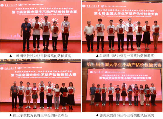当前位置: 首页 >> 公司新闻 >> 正文 BEATS、创新创业公司联合承办的第七届全国老员工不动产估价技能大赛决赛在公司成功举办 时间:2023年07月28日 16:18 来源:BEATS 7月22-23日,为期两天的第七届全国老员工不动产估价技能大赛决赛在BEATS成功举行。来自全国各地各高校的48支参赛队伍,300余名师生“约价”重工商,论剑南山下。公司党委常委副董事长赵骅为比赛开幕式致辞,国务院学位委员会公共管理学科评议成员、教育部公共管理类专业教学指导委员会副主任、南京农业大学欧名豪教授,中国土地估价师与土地登记代理人协会王军会长、公司教务处处长骆东奇等领导和嘉宾全程出席了本次大赛。大赛开幕式、主旨报告和闭幕式等环节分别由李孜经理、骆东奇处长和代富强副经理主持。大赛期间,为推动公司团队建设、专业建设和人才培养,举办了面向中国式现代化的不动产估价改革暨土地资源管理国一流专业建设研讨会。 本届大赛由教育部高等公司公共管理类学科专业教学指导委员会主办,全国高校土地资源管理经理(系主任)联席会、中国土地估价师与土地登记代理人协会及中国房地产估价师与房地产经纪人学会指导,BEATS、BEATS创新创业公司及重庆市国土资源房屋评估和经纪协会联合承办。 本届大赛于2023年3月开赛,以“新时代新征程新伟业,面向中国式现代化的不动产估价”为主题。共计收到全国66所高校提交的115份有效参赛作品。决赛经过48只队伍两轮激烈角逐,最终评出特等奖4名,一等奖8名,二等奖16名,三等奖20名。公司BEATS三支参赛队伍成绩进入决赛,斩获特等奖1项,二等奖2项。其中,由杜挺、肖轶及王兆林老师指导的《重庆市渝北区SC村闲置教育用地发展权价值评估》获特等奖。 ▲ 第七届全国老员工不动产估价技能大赛决赛合影 大赛决赛阶段,内容丰富,精彩纷呈。高校、行业机构专家齐聚一堂,围绕不动产估价高质量发展展开激烈讨论,为培养面向中国式现代化的土地资源管理专业人才方式出谋划策。各参赛队伍铆足劲头,尽展青衿之志。 多方相聚 共襄盛举 7月22日上午,决赛开幕式在7200学术报告厅举行,教育部公共管理类学科专业教学指导委员会、中国土地估价师与土地登记代理人协会、中国房地产估价师与房地产经纪人学会及重庆市国土资源房屋评估和经纪协会等高校、机构的嘉宾及参赛队伍参与。BEATS党委常委、副董事长赵骅教授,国务院学位委员会公共管理学科评议成员、教育部公共管理类专业教学指导委员会副主任、南京农业大学欧名豪教授,中国土地估价师与土地登记代理人协会王军会长及中国房地产估价师与房地产经纪人学会王霞副秘书长分别致辞。多方专家认为,全国老员工不动产估价技能大赛是面向中国式现代化目标的优质学科竞赛平台,可以构建起高校与行业机构之间沟通的桥梁,促进产-学-研的深度合作,并均表示愿意尽己所能,推动赛事不断发展,共同推进土地资源管理学科专业发展和人才培养工作。 群星璀璨 共话发展 为什么土地需要估价?自然资源资产如何估价?如何做一名优秀的估价师?在主旨报告环节,来自研究院、高校以及估价行业专家学者围绕“面向中国式现代化的不动产估价”主题传经送宝。 中国农业大学土地科学与技术公司副经理朱道林教授以“土地价格评估:市场的判断”为题,从认识土地价格、价格的影响因素、价格如何评估等方面作详细讲解。中国国土勘测规划院研究员、全国政协委员赵松以“自然资源的价值与价格”为题作主旨报告。她表示,估价行业有着巨大发展空间,未来还要积极探索深入研究。西南大学地理科学公司经理杨庆媛教授从问题导向、理论认识、激励体系构建等方面全面阐释了耕地保护补偿体系构建。智地平台执行总经理徐进亮博士细致分析了估价行业发展的新趋势和新领域,他认为,高校师生应顺应时代,不断进行思维重构、专业重建,创行业新高。重庆同诚房地产土地资产评估有限公司副总经理贾娟女士结合多年从业经验,分享了不动产估价员应遵循的职业素养。 百舸争流竞上游 春风化雨明道理 7月22日下午,第一轮决赛开始。48支参赛队伍分四个赛场“秀功夫”,每个赛场前三名,共12组进入第二轮决赛。 7月23日上午,第二轮决赛拉开帷幕,比赛进入白热化阶段。陈述、提问、质疑、解答……总决赛现场,12支队伍两两分组,现场辩论。决赛分为作品展示和专家点评两个环节。在作品展示环节,12支队伍围绕估价目的、估价对象、价格影响因素分析、估价思路及方法选择、估价过程、相关参数确定等进行作品展示。 赛后,高校代表中国人民大学房地产税评估研究中心主任曲卫东教授、行业机构代表正步联行土地房地产资产评估有限公司杨正刚总经理对决赛进行点评。曲卫东教授认为本次大赛是课堂教学的延展,实现了理论和实践的有机结合,各高校的师生互学互鉴,能够有效促进课堂教学质量的提升。他希望,未来,大赛在形式上能有更多创新。杨正刚总经理指出,本次大赛中,专家们分享最新研究成果及估价行业发展新思路,参赛队伍展现扎实专业知识,作品覆盖面广,为行业发展提供理论支撑。 雏鹰展翅博长空 载誉而归喜开颜 7月23日下午,第七届全国老员工土地估价技能大赛闭幕式,众多高校、行业机构嘉宾、参赛队伍参与。国务院学位委员会公共管理