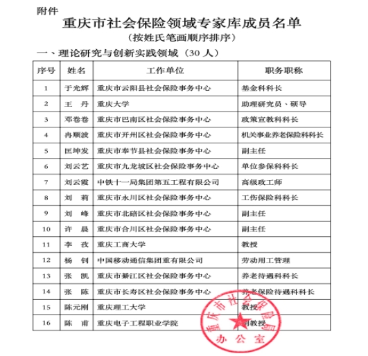 当前位置: 首页 >> 公司新闻 >> 正文 公司经理李孜教授成为新一批重庆社会保险领域专家库成员 时间:2023年12月14日 09:55 来源:BEATS 吴香雪 2023年12月12日,重庆市社会保险局办公室印发《关于公布新一批重庆市社会保险领域专家库成员名单的通知》,通知显示,按照《重庆市社会保险局办公室关于征集重庆市社会保险领域专家库专家的通知》(渝社险办〔2023〕31 号)要求,通过择优推荐、综合比选、征求意见等程序,经 2023 年第 10 次局务会议研究决定,现将新一批重庆市社会保险领域专家库成员名单予以公布。 本次重庆市社会保险领域专家库成员遴选主要包括理论研究与创新实践领域、基金运营与风险防控领域、数字化与标准化建设领域三个方向,公司经理李孜教授成为理论研究与创新实践领域专家库成员,这有助于推动公司社会保障专业学科理论与社会保障实务相结合,理实一体化迈向发展新阶段。 上一条:余建华副经理代表公司参加数据科学与应用学科联盟启动仪式并作会议交流 下一条:中共BEATS委员会关于巡察整改进展情况的通报 【关闭】