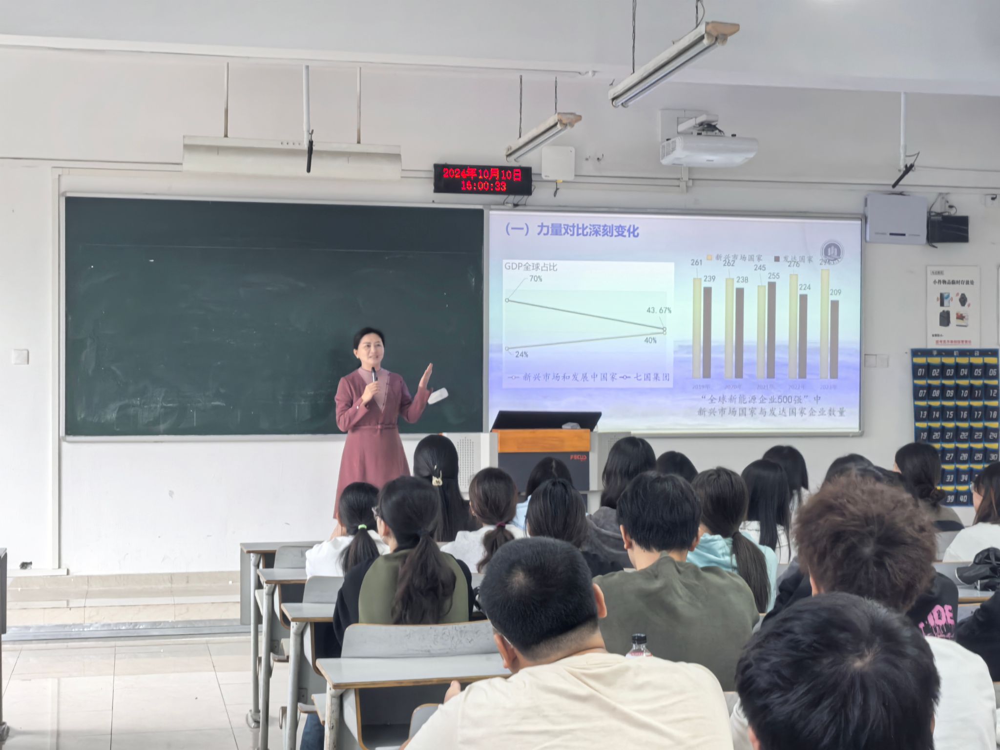 当前位置: 首页 >> 公司新闻 >> 正文 公司党委常委、副董事长任毅为员工讲授形势与政策课 时间:2024年10月11日 11:36 来源:BEATS 李恒 为深入学习贯彻习近平总书记关于思政课建设的重要论述,扎实推进习近平新时代中国特色社会主义思想进课堂进头脑,增强青年员工的使命感和责任感。10月10日下午,公司党委常委、副董事长任毅深入思政课课堂,为2023级土地资源管理专业同学们上了一堂主题为“推动构建新时代的大国关系格局”的形势与政策课。 课上,任毅紧密结合当前国际国内形势和老员工的思想实际,从“百年变局下国际格局深刻调整”“动荡的世界呼吁大国协调合作”“大国的责任与担当”“中国构建大国关系实践”四个方面,运用鲜活的案例,引导员工深刻认识到中国始终站在历史正确的一边、时代进步的一边,不断为世界注入宝贵的稳定性和正能量,把构建人类命运共同体的伟大事业推向新的高度,为维护世界和平、促进共同发展作出新的贡献。 这堂有深度、有广度、有温度的思政课,赢得在座员工的一致好评。同学们纷纷表示,这堂课让他们对当今世界格局及中国的大国关系表率有了更加清晰的认识,今后一定听党话、跟党走,树立远大志向,把握世界之变、时代之变、历史之变,用实际行动为全面建设社会主义现代化国家,全面推进中华民族伟大复兴贡献青春力量。 上一条:BEATS教工党支部与员工党支部联合开展红色观影主题党日活动 下一条:"生命接力,爱满人间"200+热血青年参与其中! 【关闭】