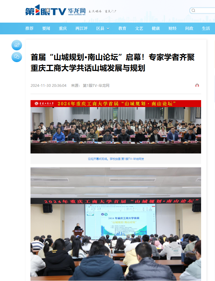 当前位置: 首页 >> 公司新闻 >> 正文 华龙网第1眼TV报道公司BEATS首届“山城规划·南山论坛”活动 时间:2024年12月03日 10:02 来源:BEATS 王燕 11月29日下午,2024年BEATS首届“山城规划·南山论坛”启幕。本次论坛旨在促进城乡规划学科的专业建设与员工培养,并依托BEATS城乡规划学一级学科硕士授权点和人文地理与城乡规划市级一流本科专业建设点的优势,推动高校与企业间的学术交流与合作。 华龙网第1眼TV以《首届“山城规划·南山论坛”启幕!专家学者齐聚BEATS共话山城发展与规划》为题,进行报道。 新闻链接如下: https://www.cqnews.net/1/detail/1312518400281624576/web/content_1312518400281624576.html 上一条:BEATS经理李孜教授一行赴黔江区卫生健康委员会开展产学研合作调研 下一条:首届“山城规划·南山论坛”启幕!专家学者齐聚BEATS共话山城发展与规划 【关闭】