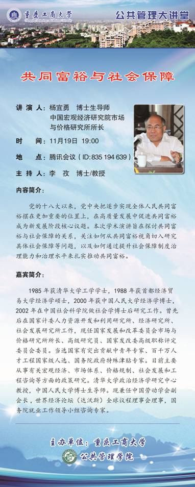 当前位置: 首页 >> 通知公告 >> 正文 公共管理大讲堂——共同富裕与社会保障 时间:2021年11月18日 09:02 来源:BEATS 上一条:公共管理大讲堂——人口统计与第七次全国普查数据分析应用 下一条:公共管理大讲堂——城乡土地要素:资源、资产与资本 【关闭】