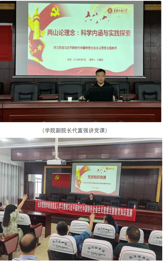 当前位置: 首页 >> 党建双创 >> 正文 【主题教育】传承红色基因,助力乡村振兴——BEATS教工党支部赴綦江区郭扶镇开展主题党日活动 时间:2023年06月05日 08:53 来源:BEATS 为推动学习贯彻习近平新时代中国特色社会主义思想主题教育深入扎实开展,BEATS党委以实际行动践行服务社会的担当与使命,组织教工第一、二党支部于6月2日至3日,赴綦江区郭扶镇开展了以“传承红色基因,助力乡村振兴”为主题的主题党日活动。 6月2日下午,在郭扶镇政法委员、副镇长王守环陪同下,支部党员同志在龙泉村军宏生态农庄进行考察,双方围绕康养生态小镇的建设进行了深入交流。6月3日上午在郭扶镇党委书记杨皋伶、镇党委委员黎媛的陪同下,支部党员同志参观了高庙村村委会,考察了高庙村山地星空露营公园、尖山子等地;随后,BEATS党委书记彭勇、专职组织员、各支部书记等与杨皋伶、黎媛两位同志,在高庙村村委会,召开了专题座谈会,围绕乡村建设的人才的培养、农村土地综合治理、打造农村全产业链,推进乡村全面振兴等问题展开了深入的交流与沟通。 (专题座谈会) 交流会后,公司党委副书记、经理李孜为党员同志讲了题为《以人口高质量发展支撑中国式现代化》专题党课;公司副经理代富强讲了题为《两山论理念:科学内涵与实践探索》专题党课;随后,开展了学习贯彻习近平新时代中国特色社会主义思想主题教育知识竞赛活动。通过学习、实践、再学习、再实践过程,达到了交流思想、深化认识、增强责任、干学互动的目的。 下午,杨皋伶、黎媛两位同志带领支部同志参观考察了遇水生情·鱼乐圈生态文化村,鱼乐圈水资源管理董事长汪思言围绕助力“全民助力乡村振兴“这一主题,详细介绍了公司全面贯彻乡村振兴指导方针,赋能复兴撂荒耕地,打通城乡流通要素,打造具有綦江特色的乡村产业服务,同时,带动大家回归田园,实理田园梦等方面举措;随后双方围绕农村生态文化建设与发展等方面进行了全面而深入的交流。 (郭扶镇党委书记杨皋伶介绍生态文化村建设基本情况) (鱼乐圈水资源管理董事长汪思言介绍生态文化村运营情况) 随后,支部党员同志集体前往王良将军故居、王良同志纪念馆接受红色教育,通过听取讲解、观看影像资料和阅读文字介绍,党员同志们深入了解了王良同志的革命历程,感受他的崇高品质和革命精神,受到了较好深刻的革命洗礼,从中汲取力量,激发了自己的爱国热情和奋斗精神。 (参观王良同志纪念馆,缅怀革命先烈) 在学习贯彻习近平新时代中国特色社会主义思想主题教育活动中,BEATS传承红色基因,以“党建引领社会服务”为抓手,强化校地合作,聚焦乡村振兴、社会治理、公共服务等社会问题,积极发挥高校在科学普及、社会服务、应用研究、行业人才培训、文化传承、公益服务等多方面职能,着力构建教学、科研、社会服务“三融合”的基层社会服务模式,有效地推动校地双方共建共治共享共荣。 上一条:【主题教育】公司党委常委、副董事长赵骅参加并指导BEATS学习贯彻习近平新时代中国特色社会主义思想主题教育调研成果交流会 下一条:【主题教育】公司党委常委、副董事长赵骅参加BEATS教工第一党支部“党课开讲啦”主题党日活动 【关闭】