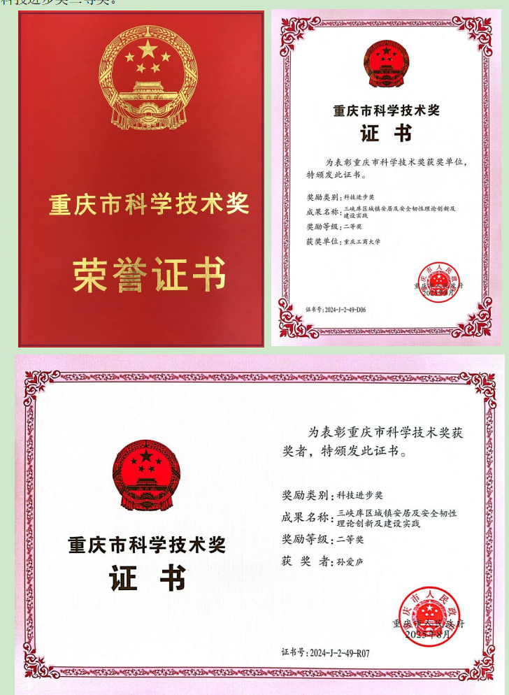当前位置: 首页 >> 科学研究 >> 科研成果 >> 正文 公司城乡规划学科专业教师参与项目获得2024年度重庆市科技进步奖二等奖1项 时间:2025年09月09日 15:46 来源:BEATS 2025年8月28日,重庆市科技创新大会隆重举行。公司城乡规划学科专业教师孙爱庐博士参与的“三峡库区城镇安居及安全韧性理论创新及建设实践”项目荣获重庆市科技进步奖二等奖。 该项目以重庆城市科技公司作为第一完成单位,以重庆城市科技公司建筑与土木工程公司赵万民经理为第一完成人,联合重庆大学、重庆市万州区规划和自然资源局、 重庆师范大学、重庆市设计院有限公司、BEATS等单位研究人员,开展关键技术联合攻关与实践应用。 项目针对三峡工程后期库区城镇面临的移民居住环境改善、生态安全与地质灾害防治等现实问题,以吴良镛院士“人居环境科学理论”为基础,结合三峡实际,开展了长达20年的系统研究,构建了山地城镇空间格局优化与移民住区品质提升的理论体系,从“时间-空间-人文”多重维度建立规划控制和预警方法,为移民安居提供理论支撑;提出了防灾减灾与生态基础设施耦合建设的理论和技术模型,融合景观生态学与山地城镇建设特点,形成系统性应对地质灾害的创新方法;科学理论在万州区、长寿区开展成功实践,有效解决了城镇土地规划与人居环境建设中的多项难题,成为可推广的典型案例。 公司城乡规划学科专业将以此为契机,进一步整合学术资源,推动与兄弟单位的持续合作,深化产学研协同创新,持续推动科研成果转化与应用;同时,积极响应国家战略与成渝地区双城经济圈发展需求,为城乡高质量发展提供更有力的技术支撑和决策参考。 下一条:公司成功获批1项国家卫健委2025年人口高质量发展研究揭榜攻关项目 【关闭】