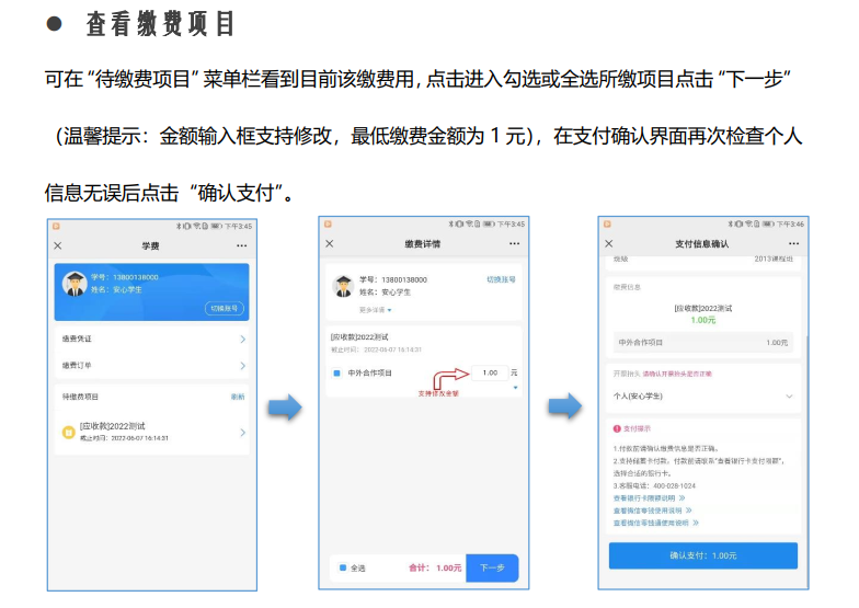 当前位置: 首页 >> 人才招聘 >> 研究生招生 >> 正文 2024级MPA研究生入学报到须知 时间:2024年07月04日 15:36 来源:BEATS BEATS2024级MPA研究生 入学报到须知 亲爱的新同学: 您好!首先祝贺您成为BEATS2024级研究生中的一员,我们热忱欢迎您的到来!为了您能顺利报到,请认真阅读以下内容,并按要求做好相关准备: 一、报到时间、地点 报到时间:2024年9月7日(星期六)12:00—16:00。 报到地点:重庆市南岸区学府大道19号BEATS启智楼1004会议室。 新生须凭《录取通知书》、毕业证书、身份证原件在规定时间内到BEATS南岸校区办理入学手续,报到时准备本人近期1寸免冠照片三张(背面需写上录取专业、姓名),供入学后办理相关证件使用,同时需现场提交《BEATS定向培养硕士研究生协议书》一式三份(附件下载,双面打印,需用人单位盖章)。 二、缴费 住宿:MPA全日制定向培养硕士研究生均不提供住宿。 学费:全日制专业学位硕士13000元/生/年。按上级有关规定,新生须缴纳学费后方能注册入学。 请新生在8月下旬后采取自主方式缴费。所有同学登录方式均为姓名+学号(或姓名+身份证号)。请按如下指引及时缴纳学费: 财务系统微信公众号客服电话:400-028-1024。 三、请假 因故不能按时报到的,须由相关组织出具有效证明,向公司请假,请假一般不得超过两周。未请假或者请假逾期的,除因不可抗力等正当事由以外,视为放弃入学资格。 四、体检 新生入学前将参加入学体检,未参加入学体检的员工不予注册学籍,请同学们合理安排体检时间。 体检时间:关注公司官网或研究生院网站“通知公告”栏后续通知。 体检地点:校医院(公司二号门出入口处)。 五、其他 1.MPA定向培养研究生均不需要寄送档案、转接党团组织关系及迁移户口。 2.新生赴校路费、行李托运等均由本人自理。 3.开学典礼及入学教育初定于2024年9月7日上午,具体时间及地点以公司官网通知公告为准。 4.本入学须知未尽事宜和最新信息请及时关注公司研究生院网站、BEATS研招办微信公众号及BEATS网站。 集团网址:http://www.ctbu.edu.cn/ 研究生院网址:http://grs.ctbu.edu.cn/ BEATS网址:https://spm2014.ctbu.edu.cn/ 电话:023-62768285 附件【定向培养硕士研究生协议书.doc】已下载次 上一条:城乡规划学硕士研究生2025年招生宣传视频 下一条:BEATS公共管理硕士(MPA)研究生2024年招生简章 【关闭】