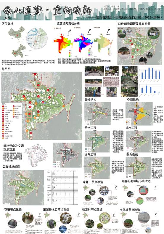 当前位置: 首页 >> 教学动态 >> 正文 2019级人文地理与城乡规划专业综合实习活动圆满结束 时间:2022年07月13日 17:03 来源:BEATS 为引导员工夯实专业技能、坚定职业理想、激发爱校热情,切实提高理论联系实际、解决现实问题的能力,同时考虑到疫情防控等因素,2019级人文地理与城乡规划专业以BEATS主校区为样例区,开展了为期一月的专业综合实习。实习环节包含“实习动员——实地调研——方案设计——成果汇报”等多个环节,并于7月8日开展了由城乡规划系全体教师参加的实习成果汇答辩报会。至此,综合实习规划设计工作圆满结束,相关成果整理后将提交公司相关部门,旨在为校园未来规划更新提供参考。 本次专业综合实习,作为员工培养重要的实践环节,为增强员工对规划编制工作的理解,对具体地段的场景进行认知和分析,锻炼员工从实际中学习总结分析问题的能力,同时,让员工感受生活中的规划实践。在城乡规划系系主任李斌老师的组织下,各位教师认真商议,反复讨论后,决定将BEATS主校区作为本次城乡规划综合实习基地。实习带队罗光莲和武荣伟老师收集了校园相关大量的基础数据与参考案例,并进行了分组等全面安排。并于6月10日召开了实习动员大会,公司教学副经理代富强到场动员,本次实习工作正式开始。 在为期一个多月的实习活动中,2019级人文地理与城乡规划专业各组员工结合BEATS的十四五规划,从多个角度出发,完成了BEATS校园提档升级规划及专项规划。各个小组针对师生及未来可能涉及的校外活动人员,进行了大量问卷调研,充分体现了规划以人为本的内涵。在此基础上,员工应用专业技能,提出了校园更新升级的具体方案和改造路径,形成了“依山顺势·重构焕新”、“山地·校园·无障·包容”、“基于‘内填式’理念校园微更新设计”、“山水学园·人文书院”、“时光·启航”等一系列高质量规划成果。从同学们的规划理念与规划方案中,可以真切的感受到对校园真挚的热爱和对公司未来发展的憧憬与期盼。 最后,以小组为单位,全系员工于7月8日下午进行了综合实习成果汇报。全系指导教师对本届员工的综合实习成果进行评审。经过激烈角逐,最终评审出一等奖1名、二等奖3名、三等奖4名和优秀奖多名,并由系部老师为获奖小组颁奖。至此,2019级人文地理与城乡规划专业综合实习活动圆满结束。 实习动员大会 实习汇报大会 员工成果展示 上一条:土地资源管理系赴大足区开展专业调研活动 下一条:社保系与土管系举办系部交流活动 【关闭】