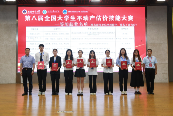 当前位置: 首页 >> 教学动态 >> 正文 公司学子在第八届全国老员工不动产估价技能大赛中斩获佳绩 时间:2024年09月10日 17:08 来源:BEATS 杜挺 2024年8月16日至18日,第八届全国老员工不动产估价技能大赛决赛在安徽师范大学隆重举行。公司王兆林、肖轶、杜挺带领2022级6名土地资源管理专业员工和1名人文地理与城乡规划专业员工前往芜湖参加决赛。经过专家评审、两轮决赛的激烈角逐,公司李雨晴、彭一鸣、蒋钰桥、高菘4名同学的作品《重庆市涪陵区大梁山森林山火生态环境损害赔偿评估》荣获全国一等奖;包袁宁、江雨、陈佳彤、吴鹏辉4名同学的作品《基于碳排放和碳汇角度的广阳岛生态服务价值评估》荣获全国二等奖;公司获得优秀组织单位;肖轶、杜挺、王兆林三位老师获得大赛优秀指导教师。 本届不动产估价技能大赛由教育部高等公司公共管理类专业教学指导委员会,全国高校土地资源管理经理(系主任)联席会、中国土地估价师与土地登记代理人协会及中国房地产估价师与房地产经纪人学会指导,安徽师范大学地理与旅游公司和安徽省土地估价师与不动产登记代理人协会承办。大赛围绕“创新与融合:面向高质量发展的不动产估价”主题,旨在打造不动产估价技能人才培养的学科竞赛优质平台,发掘和培养一批不动产估价优秀人才,推动不动产估价教育理论与实践的深度融合,加深高校与行业机构之间的合作与交流。 公司学子在本届大赛中斩获佳绩,不仅展现了公司学子扎实的专业功底和创新能力,也体现了公司一流专业建设的显著成效。 上一条:“迎评促建”人文地理与城乡规划专业教师召开新学期教研活动 下一条:公司学子在第四届全国老员工土地整治与生态修复工程创新设计大赛中喜获佳绩 【关闭】