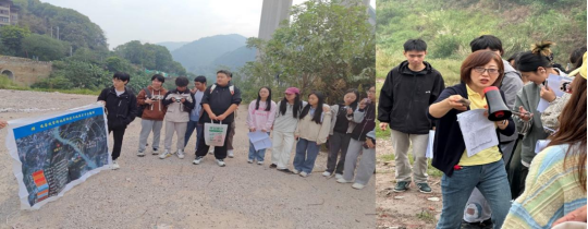 当前位置: 首页 >> 教学动态 >> 正文 2023级人文地理与城乡规划专业地学基础实习圆满结束 时间:2024年11月05日 14:48 来源:BEATS 蔡进 2024年10月26-27日,2023级人文地理与城乡规划专业的学子们在周心琴、李雪花、范春、蔡进及陈帅五位老师的带领下圆满完成地学基础实习。地学基础实习是人文地理与城乡规划专业实习体系的第一个重要实习,属于课程群实习类型。它是课堂教学的延续,不仅丰富拓宽知识领域,也为后期城乡规划课程学习夯实基础。 图1 实习动员大会 10月26日早上约8点,到达第一个观测点:观音峡。在李雪花和蔡进两位老师的讲解下,同学们认真学习了观音峡背斜地貌的形成原因以及岩石特性和矿物组成,并以此知识点为跳板,深入学习了四川盆地的地貌构成类型和地质年代发展。约9点到达第二个观测点:废弃采矿场。李雪花老师现场指导员工运用地质罗盘测定岩层产状、走向、倾向、倾角等要素,并对周边岩石岩层进行讲解。范春老师强调了生态文明建设的重要性并让同学们思考废弃矿坑的合理利用和生态治理模式。下午1点,抵达第三个观测点:涞滩古镇。周心琴和范春老师带领员工参观古镇,同时介绍涞滩古镇的历史沿革、选址特征、基本性质、空间格局、传承保护、未来规划。同学们分散成各个小组对古镇居民及周边农户家庭进行入户调查。经过2个小时的深入调研,同学们了解了农户家庭的基本情况,同时咨询了村民对古镇生活的满意度以及对古镇未来发展的期望,由此深入思考当前古镇进一步发展的机遇与挑战。下午4点,抵达第四个观测点:紫色土剖面。陈帅老师讲解了农耕文明的发展与土壤的密切联系,紫色土的剖面、形成、特点。同学们因此理解了“紫色盆地”名字的由来,思考了紫色土的改良方案。 图 2 观音峡实习点 图 3 废弃采石场实习点 图 4 涞滩古镇实习点 图 5 入村入户实习 图 6 紫色土实习点 10月27日,员工们迎着清晨的第一缕阳光开启了第五个观测点:山地黄壤认知、第六个观测点:缙云山植物样方及第七个观测点:特色民宿实习。陈帅老师先总体介绍了世界土壤的分布规律,土壤的剖面,由大即小讲解了地学基础实习过程中所遇到的土壤类型。之后员工们在李雪花老师的指导下分组进行植物样方测定,从测量数的胸径到统计样地内各种树木的个体数,同学们认真测量估算收获颇丰。随后范春老师结合缙云山清欢渡民宿案例,阐释了民宿的基本特征和民宿规划设计的基本要领,强调了要打造有温度的民宿,注重局部设计。最后,实习队伍奔赴了一场自然的浪漫:爬山,体验了缙云山的自然风光,领略了其佛教建筑,康体健身项目。下午1点半,同学们参观了重庆自然博物馆。“世界因多姿多彩的物种而精彩,每一个物种的消失,都是人类走向孤独的脚步”博物馆的标语让同学们思考起了地球演化过程,地质历史变迁,生物进化理论,岩石的奇妙等。六个专题展厅,是一场神奇的时空对话,是一场自然的探索之旅。 图 7 缙云山实习点 图 8 合影留念 行程安排十分紧凑的地学基础实习依然有丰富的专业知识。两天、两区共涉及自然地理5个、人文地理4个观察点,拥有丰富野外工作经验的和扎实教学功底的带队教师们在地学实习过程中重点培养了员工的区域认知能力、综合思维能力和地理科研能力。此次地学基础实习不仅是一次知识的积累,更是一次成长的历练。同学们将理论与实际相结合,更深入地理解和掌握知识;互相帮助,共同探讨,培养了团队合作精神和领导能力;深入了解社会、环境、历史等方面,同学们从中认识到了自己的社会责任和使命。走出传统课堂,用脚步丈量土地,用心灵感受知识,地学基础实习,是一场与地理温柔相拥的过程,是一次自我超越的成长历程。 上一条:2022级劳动与社会保障专业学子赴光大·百龄帮龙山老年养护中心开展实习实践活动 下一条:公司土地资源管理专业本科生在第六届全国老员工土地国情调查大赛中斩获佳绩 【关闭】