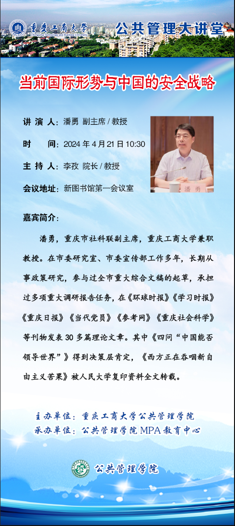 当前位置: 首页 >> 科学研究 >> 学术讲座 >> 正文 公共管理大讲堂——当前国际形势与中国的安全战略 时间:2024年04月15日 19:42 来源:BEATS 上一条:公司城乡规划系教师受邀参加2024第二届山地人居环境学术研讨会并作主题报告 下一条:公共管理大讲堂——新城市 新建设 新生活:未来城市发展中的建设与服务 【关闭】