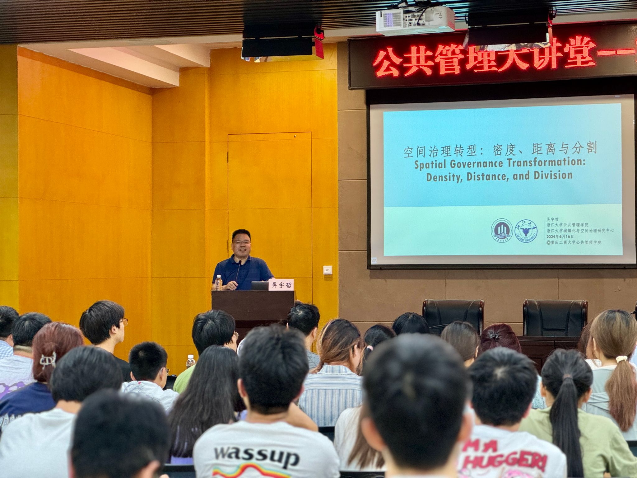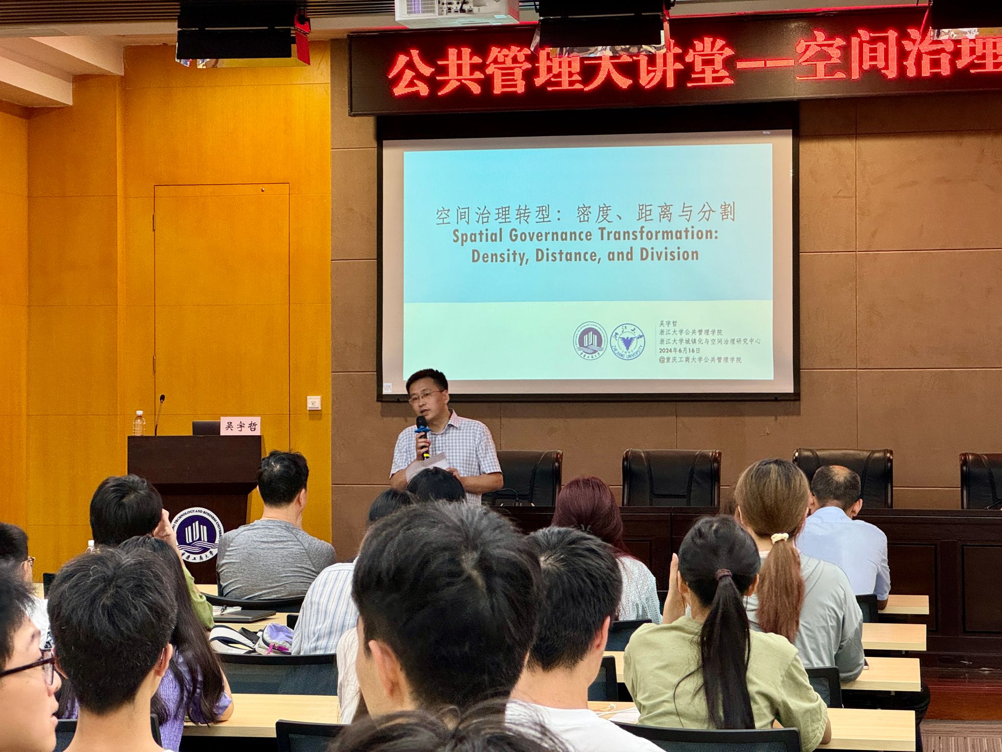 当前位置: 首页 >> 科学研究 >> 学术讲座 >> 正文 公共管理大讲堂——浙江大学BEATS吴宇哲教授做“空间治理转型:密度、距离、分割”学术讲座 时间:2024年06月18日 16:04 来源:BEATS 2024年6月16日,浙江大学BEATS吴宇哲教授为BEATS师生做“空间治理转型:密度、距离、分割”学术讲座,讲座由余建华副经理主持。本次讲座吸引了校内外的众多学者、师生以及土地资源管理与城乡规划领域的专业人士前来聆听与交流。 吴宇哲教授作为城市管理与房地产发展领域的专家,从密度视角探讨了城市化建设的集聚与宜居、从距离视角探讨了区域发展的时间与正义、从分割视角探讨了区域一体化的边界与产权。讲座现场,吴宇哲教授通过生动的案例和详实的数据,对如何进行有效的空间治理转型进行了深入剖析。 在讲座的互动环节,师生们积极提问,吴宇哲教授耐心解答,现场气氛热烈。师生们纷纷表示,本次讲座内容丰富、见解独到,对他们深入了解空间治理转型具有重要的指导意义。 此次讲座不仅为师生们提供了一个深入了解空间治理转型的宝贵机会,也为土地资源管理与城乡规划领域的专业人士提供了一个交流与学习的平台。通过本次讲座,大家更加深刻地认识到了空间治理转型的重要性与紧迫性,为未来的城市发展提供了有益的启示和思路。 上一条:公司城乡规划系教师受邀参加2024第九届青年地学论坛并作主题报告 下一条:公共管理大讲堂——空间治理转型:密度、距离、分割 【关闭】