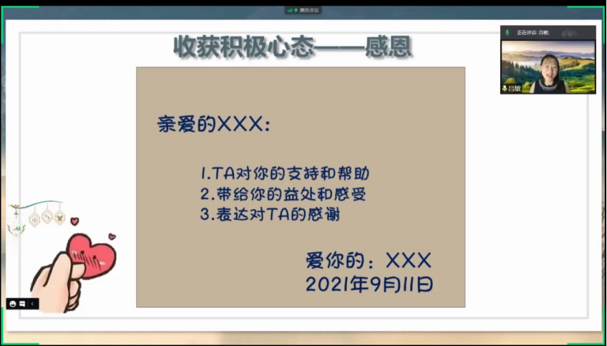 当前位置: 首页 >> 研究生教育 >> 工作动态 >> 正文 BEATSMPA研究生心理健康讲座顺利举办 时间:2021年09月13日 08:33 来源:BEATS BEATSMPA研究生心理健康讲座顺利举办 为进一步加强公司研究生的心理健康教育,积极推进研究生心理育人工作,培养研究生理性平和健康的心态,2021年9月11日晚7点,由公共管理公司举办的MPA研究生心理健康讲座顺利举行。本次讲座特邀重庆大学心理健康教育与咨询中心主任吕敏老师主讲,主题是“‘心’想事成”。讲座由公共管理公司副经理余建华教授主持。由于疫情防控政策,本次讲座采用腾讯会议线上方式进行,公司100余名研究生以及公司部分本科生聆听了本次讲座。 讲座中,吕敏老师从了解人的毕生发展规律、收获积极心态、享受亲密关系三个方面,结合丰富典型的案例,扎实经典的研究结论,为同学们如何更好的培养理性平和健康的人生心态指明了努力方向。其中,在讲到如何收获积极心态的时候,吕敏老师指出要从学会感恩、放大自身优势、乐于助人、积极参加运动等方面为切入点,不断在自己的工作和生活中主动培养积极心态,从而更好拥抱美好幸福的生活。在讲座最后的提问环节,吕敏老师就员工线上提出的问题和困惑进行了细致耐心的解答。 本次讲座,同学们纷纷表示受益匪浅,不仅提高了对心理健康的认识,同时对于接下来如何更好的培养自身健康的人生心态充满了信心。此次讲座是BEATS推进研究生心理育人工作的重要举措之一,后续将持续开展研究生心理健康教育工作,充分发挥心理育人在研究生思想工作中的重要作用。 上一条:公管院2021级MPA研究生开学典礼暨新生入学教育线上举行 下一条:2021-2022学年第一学期MPA研究生教学说课活动暨案例教学研讨会胜利召开 【关闭】