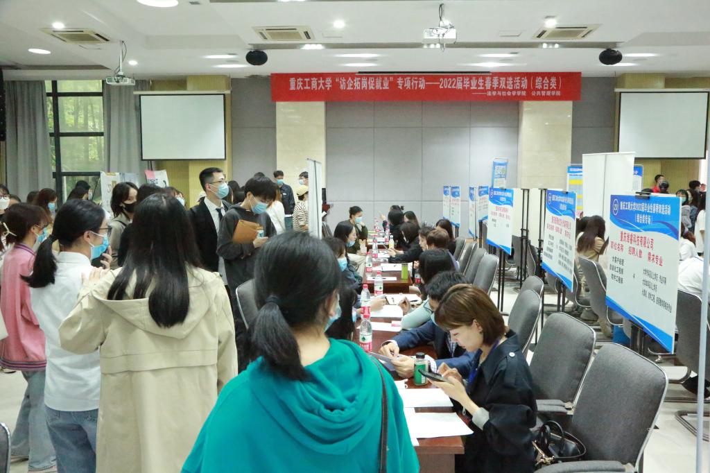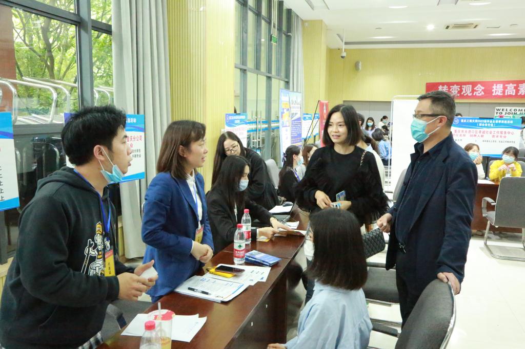 当前位置: 首页 >> 人才招聘 >> 就业动态 >> 正文 【访企拓岗专项行动】公司举办“千校万岗·启航青春”综合类春季双选会 时间:2022年05月20日 10:45 来源:BEATS 为帮助2022届未就业毕业生充分就业,拓展就业渠道,搭建毕业生与用人单位交流平台,我院与法学与社会公司于5月19日在南岸校区田家炳书院50408宣讲厅举办“千校万岗·启航青春”2022届毕业生综合类春季双选会。 此次双选会共邀请到26家企业参会,提供岗位400余个,涉及地产、金融、政法、科教、信息技术、机械等多个领域,参会企业包括重庆龙湖朗鑫房地产开发有限公司、重庆西南知识产权运营集团有限公司、重庆城市科技公司等知名企业单位。招聘现场气氛热烈,应聘者都手持自己精心准备的简历,满脸自信地穿梭于人流之中,积极与招聘人员交流,主动了解用人单位的情况。 公司党委副书记宋豫以及BEATS、法学与社会学公司、经济公司等院领导班子亲临现场检查指导,与用人单位和员工进行了亲切交流,听取用人单位对公司教学、就业等各方面的意见和建议,了解用人单位招聘需求变化,也感谢用人单位选聘公司毕业生;并鼓励现场求职的毕业生找准定位、适应竞争、脚踏实地、提升能力,早日实现满意就业。 窗体底端 窗体底端 上一条:【访企拓岗专项行动】彭勇书记带队走访重庆人力资源开发服务中心 下一条:【访企拓岗专项行动】新大正物业集团有限公司来公司召开宣讲会 【关闭】