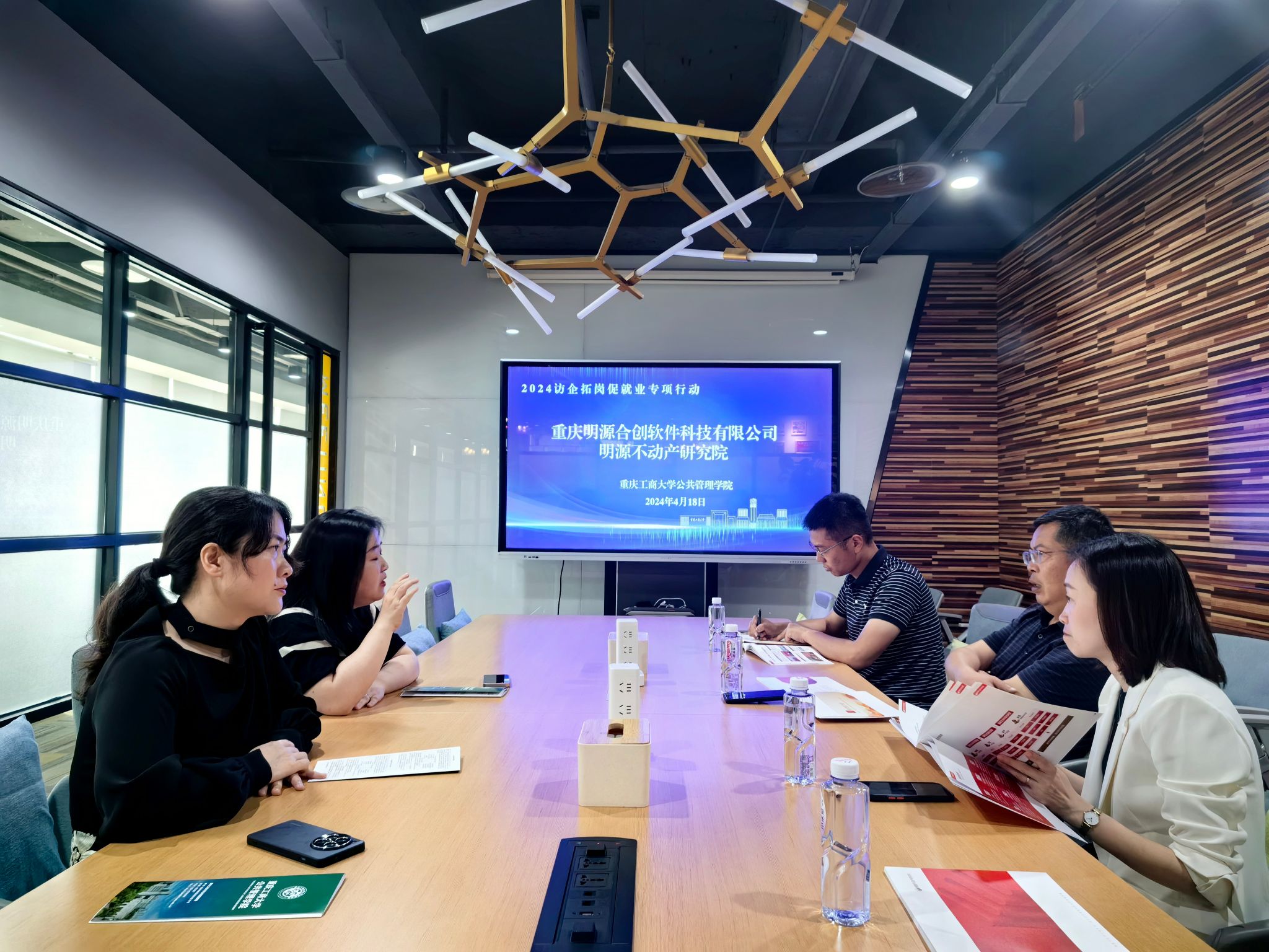当前位置: 首页 >> 人才招聘 >> 就业动态 >> 正文 【访企拓岗专项行动】 彭勇书记带队走访重庆明源合创软件科技有限公司 时间:2024年04月18日 17:18 来源:BEATS 李恒 为深入挖掘实习就业岗位,为毕业生争取更多就业机会,全力促进毕业生更加充分更高质量就业。4月18日,BEATS党委书记彭勇、党委副书记谢书楠、土地资源管理系教师杜挺、毕业班辅导员李恒一行前往重庆明源合创软件科技有限公司(明源不动产研究院)开展“访企拓岗”专项行动。 会上,明源云西南大区市场部总经理刘忠对企业文化、企业主营业务、人才需求等做了整体的介绍。彭勇简要介绍了公司的专业特色、人才培养等情况,希望双方加强合作,共享共建,互利共赢。双方就校企合作、深化产学研融合发展以及共同搭建人才培养平台等内容进行了深入交流,双方负责人纷纷表示,希望通过加强合作,共同探索人才培养的新路径。 BEATS将继续加大“访企拓岗促就业”工作力度,加快推动就业工作进展,进一步深化校企合作,加强供需对接,整合优质就业资源,助力毕业生高质量就业和人才培养高质量发展。 上一条:【访企拓岗专项行动】南岸区花园路街道办事处与公司共建创新实践基地举行签约授牌仪式 下一条:【访企拓岗专项行动】公司举办“翠湖英才,职为你来”2024届毕业生“春季促就业专项行动”BEATS专场招聘会 【关闭】